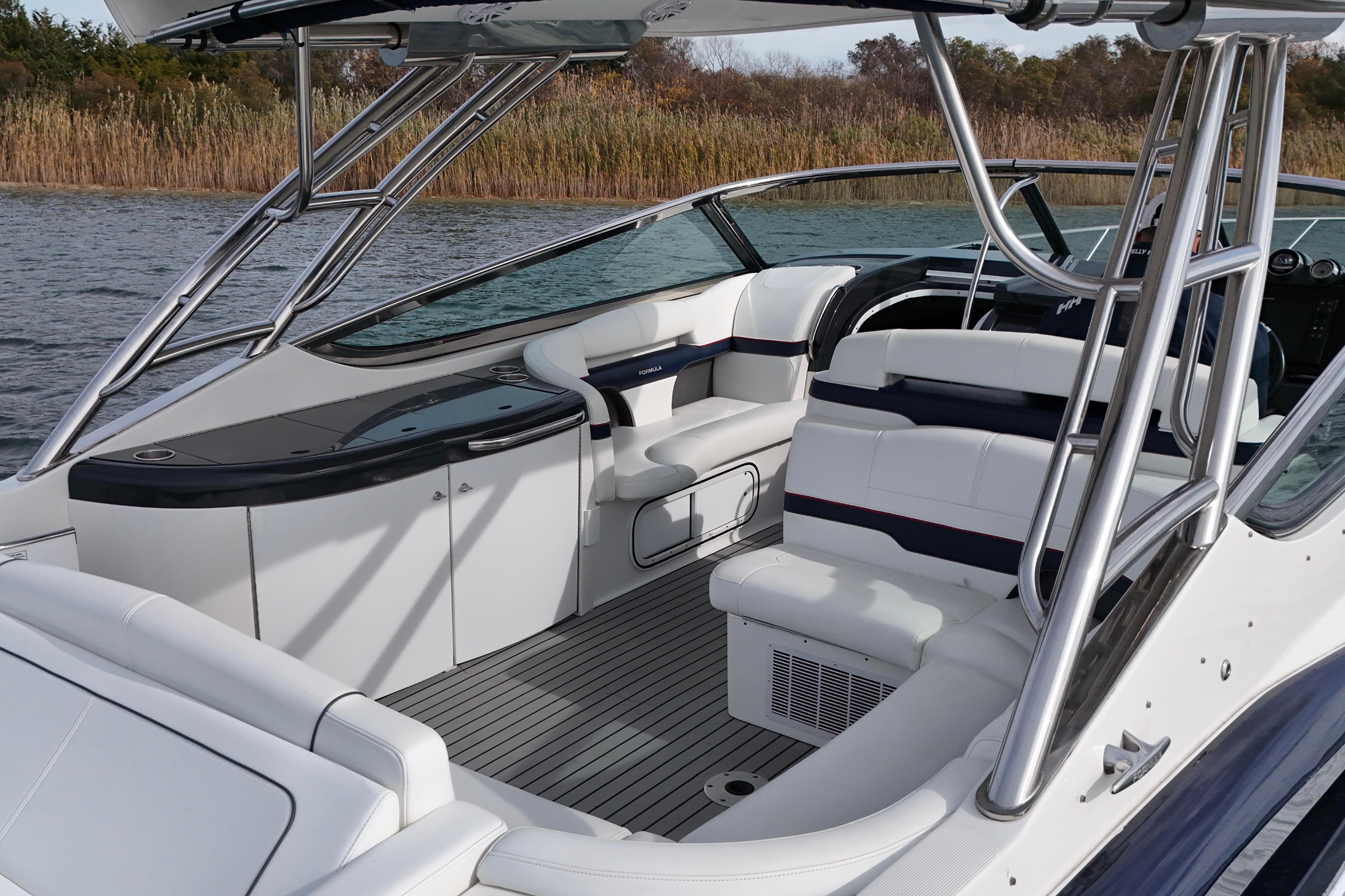 The Formula 370 Super Sport is known for its sleek profile, intelligent cockpit design, and true dual-purpose capability. The cockpit converts effortlessly for cruising, entertaining, or sun lounging, while the cabin offers the comfort needed to extend your range beyond day trips. Premium materials, refined finishes, and thoughtful ergonomics reflect Formula’s reputation for quality and performance.