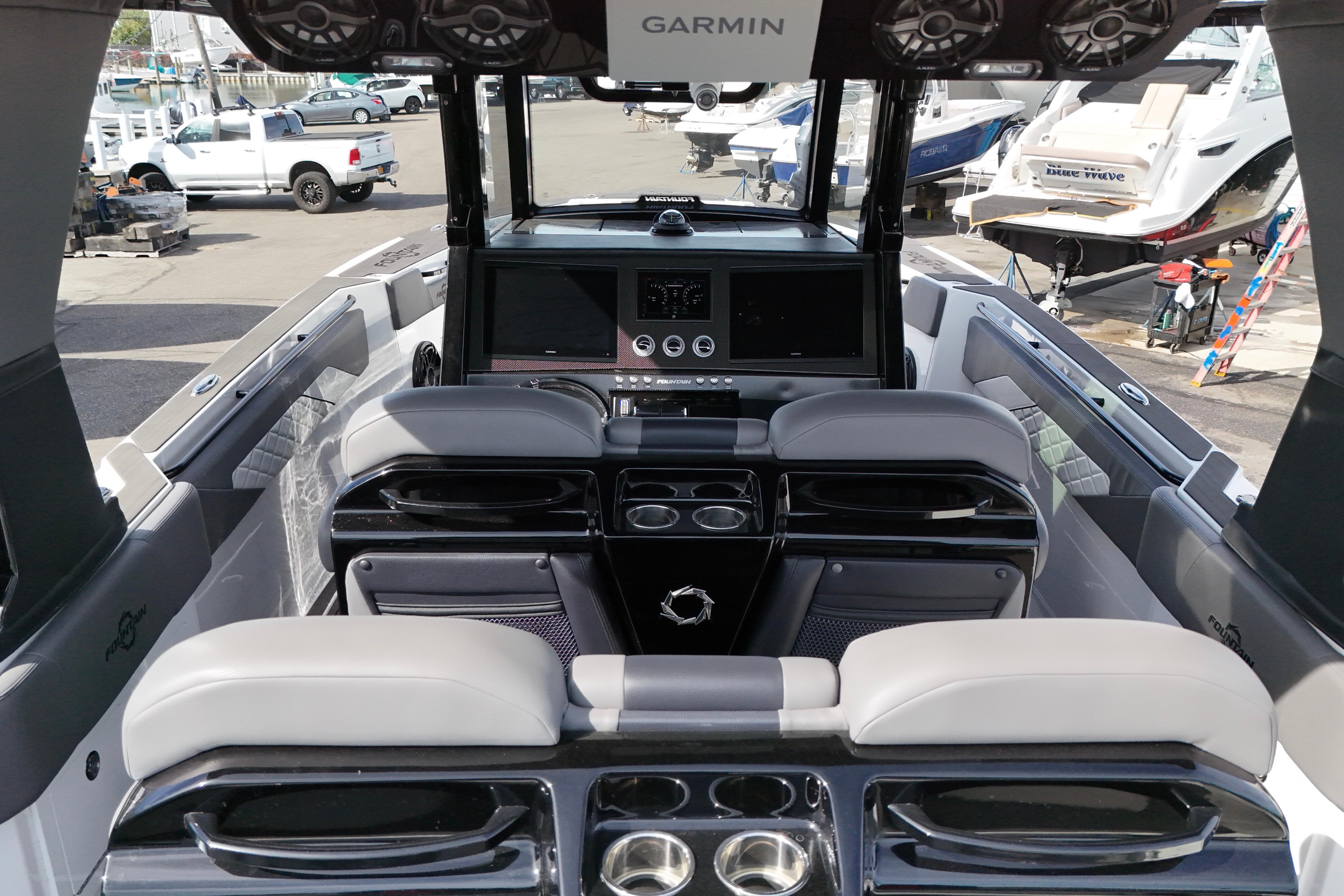 Lift-kept and exceptionally maintained, this 2023 Fountain 38SCX stands as one of the cleanest and most customized examples available. Powered by triple Mercury Racing V10 400Rs with labbed Mercury Ventura props, it delivers exhilarating top-end performance while retaining Fountain’s signature balance of handling, comfort, and ride stability.