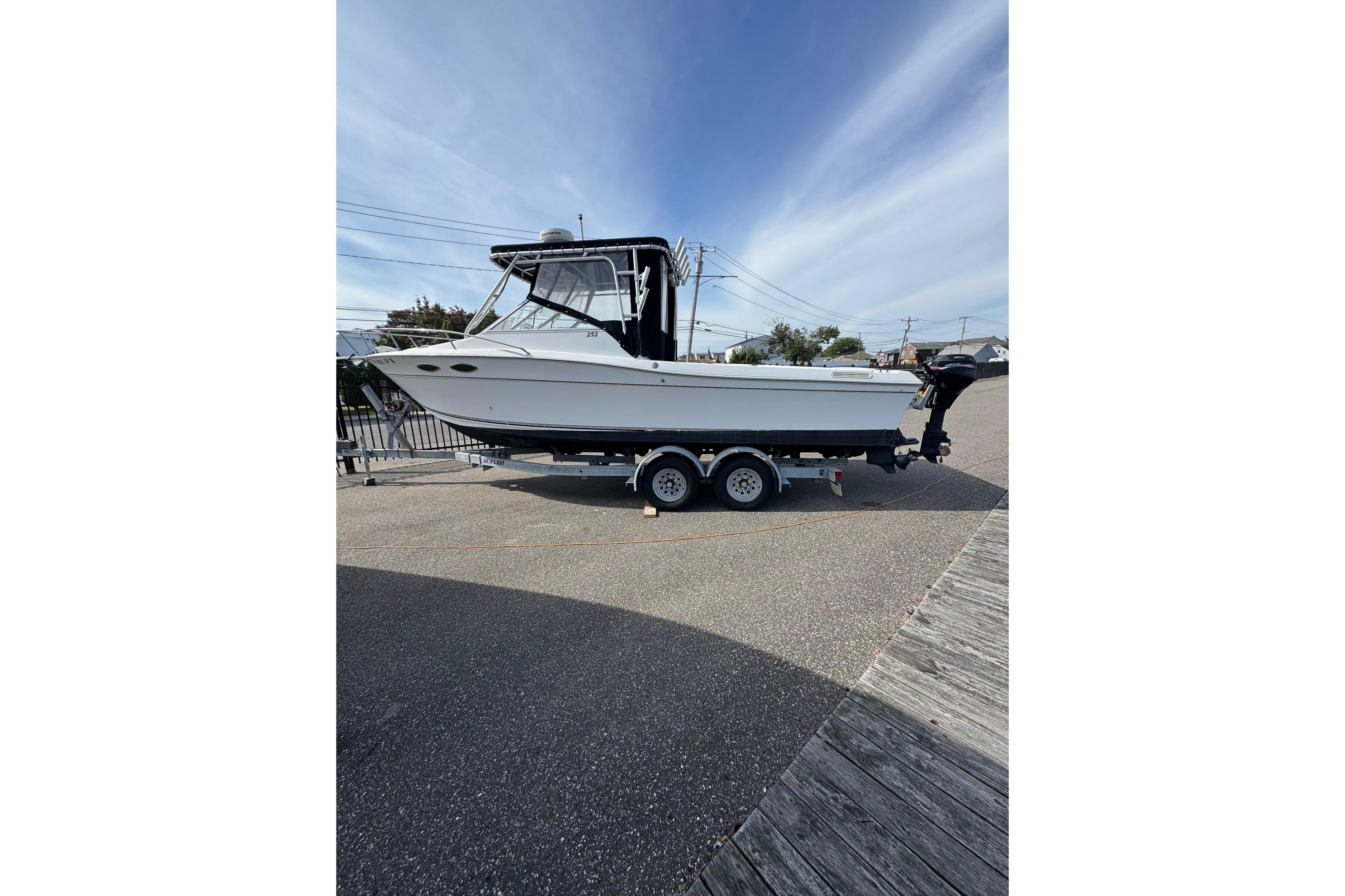 This 1998 Sportcraft 252 Open Fisherman is fully equipped and ready for fishing. The spacious cockpit comfortably accommodates up to four anglers, making it perfect for fishing trips or family outings.