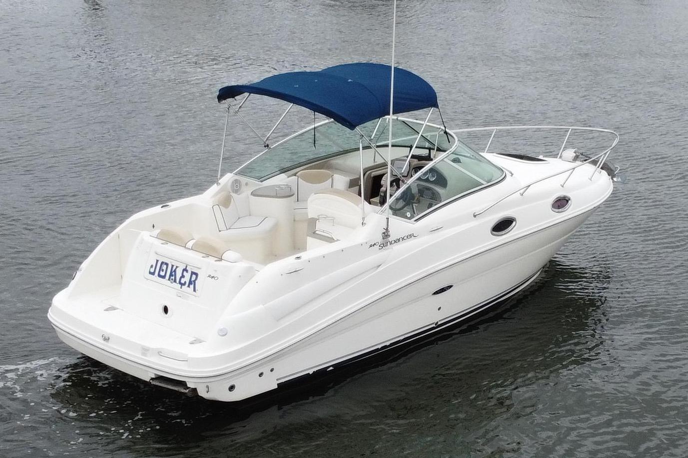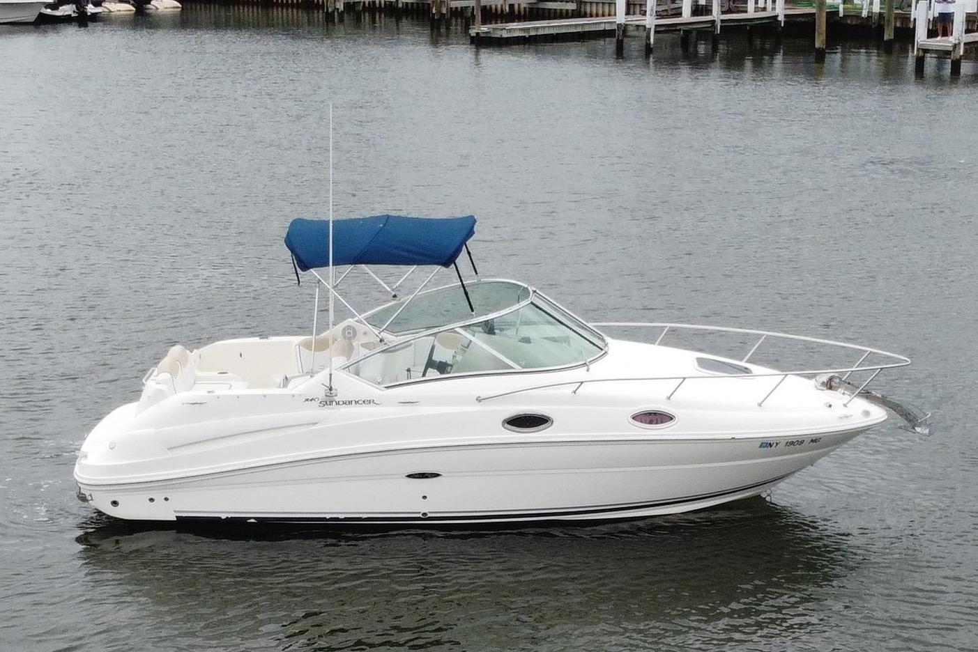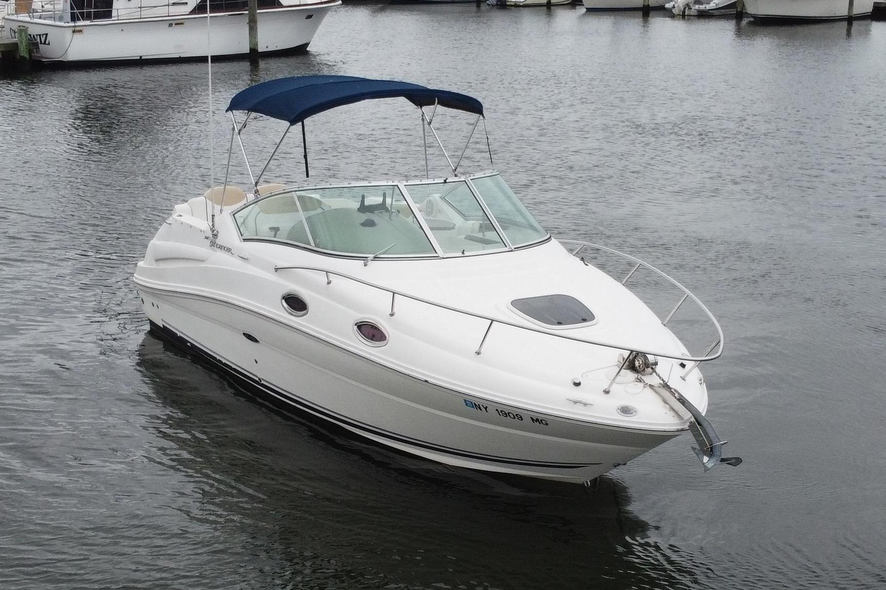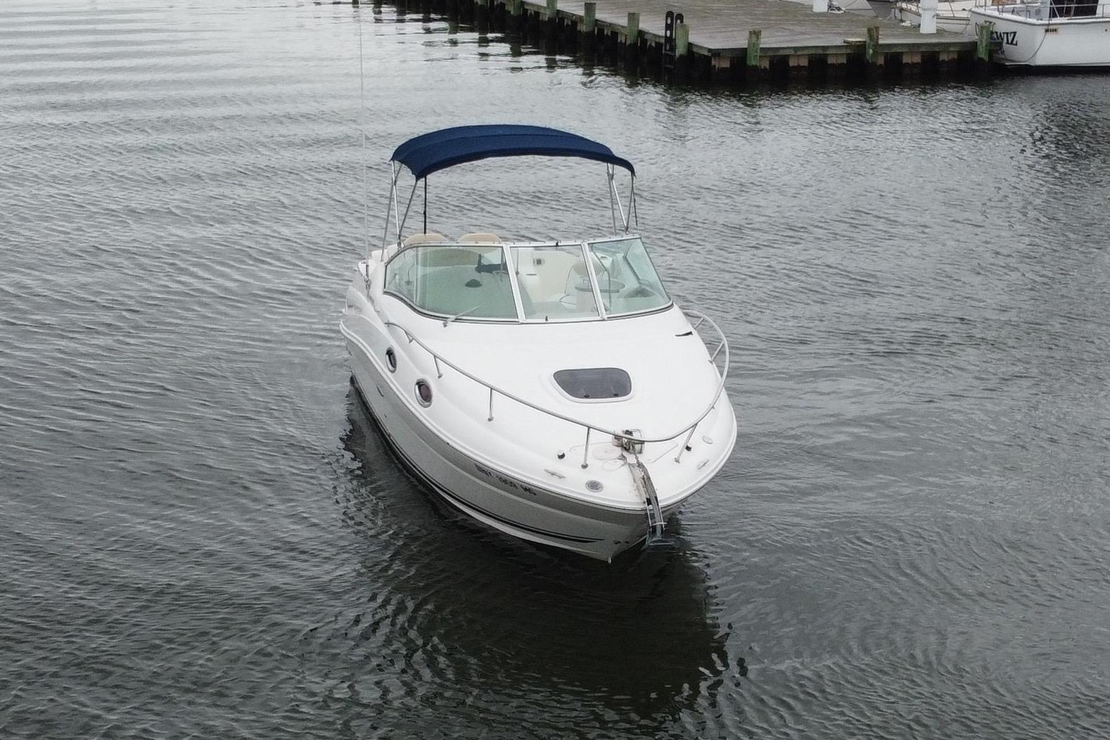 The 240 Sundancer is a grand step into Sea Ray's world-renowned family of raised helm, mid-cabin stateroom designed cruisers. The ingenious cabin layout encompasses plentiful storage, gorgeous cherry wood cabinetry and four color-coordinated fabric design package choices. Outside, the functional cockpit is designed for versatility and entertainment for fun while docked or underway. At first glace she may appear as a large-scale cruiser, but she's still trailer-able with an 8' 6" beam.