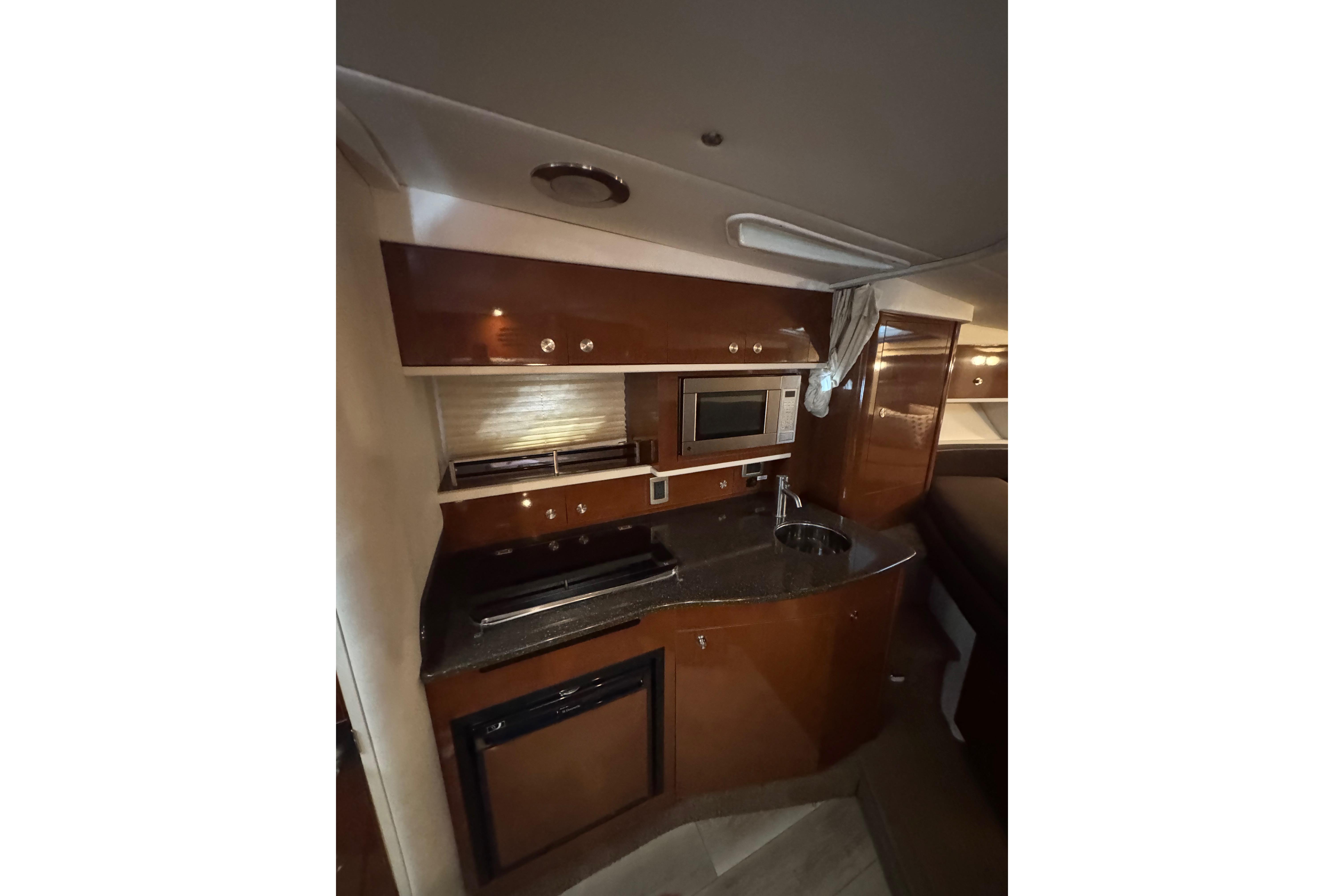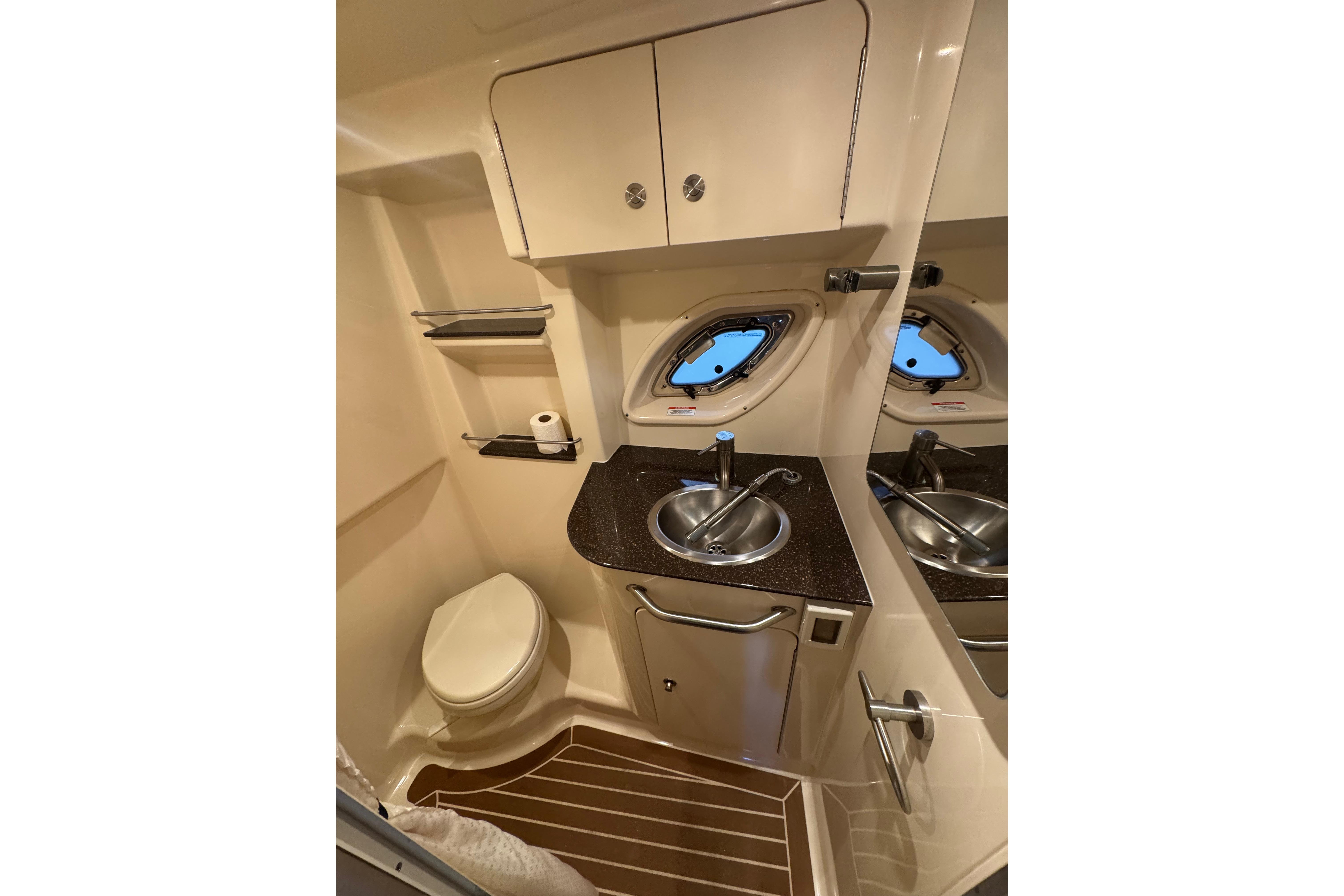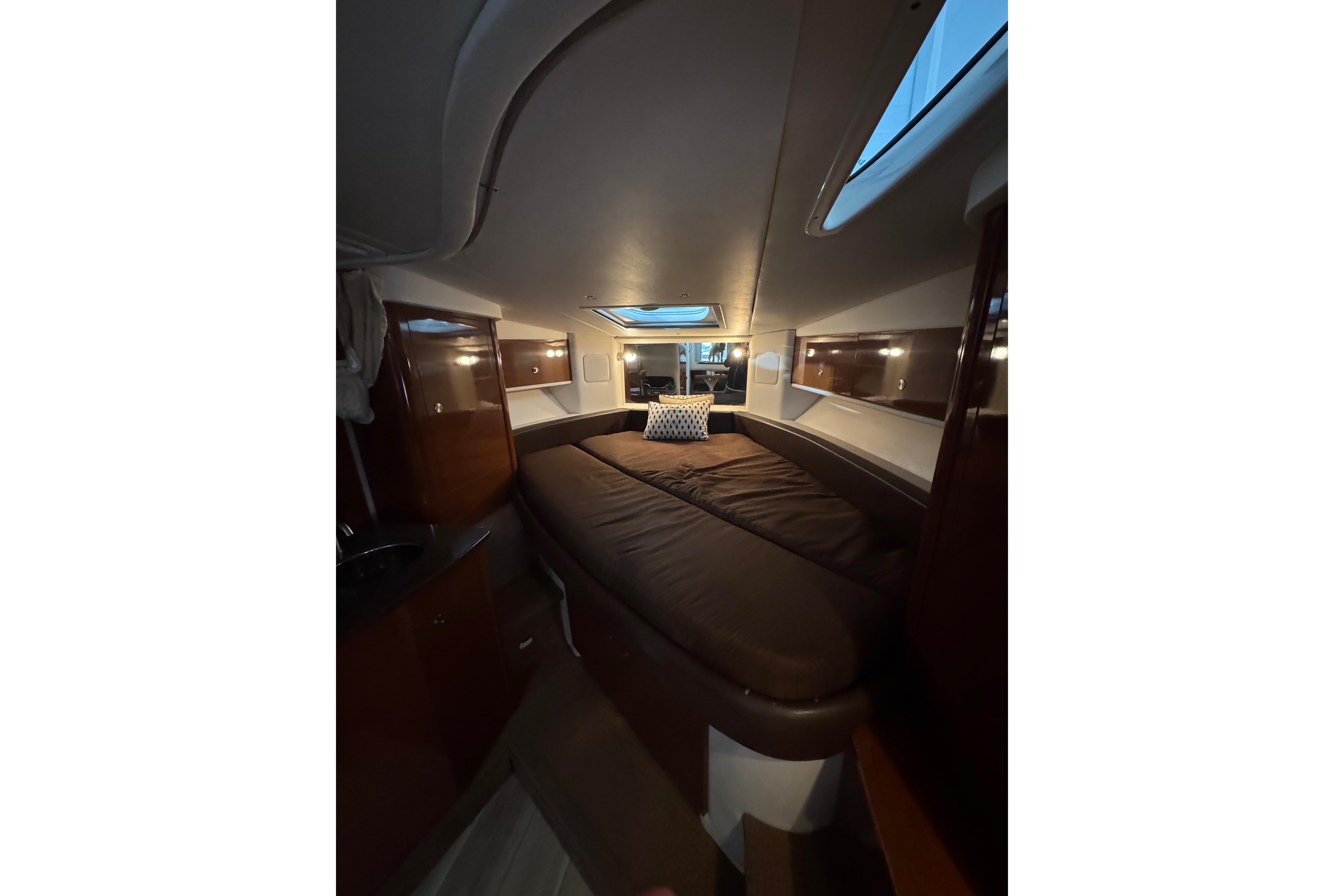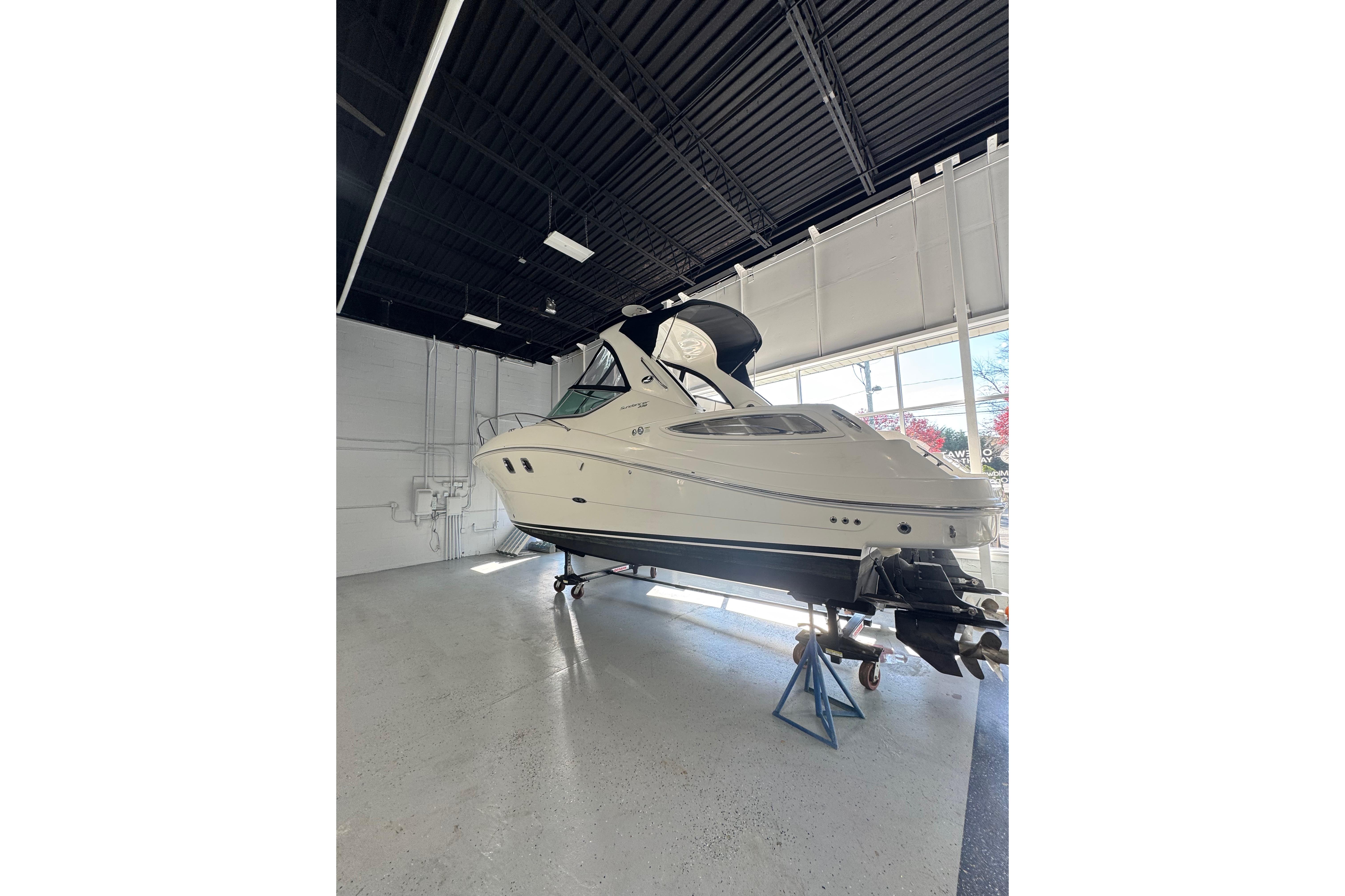Performance-wise, the twin MerCruisers give it plenty of power. It gets up on plane quickly, cruises comfortably, and handles chop well. Whether you’re anchoring out for the afternoon or heading to a waterfront restaurant, this Sundancer makes it easy and fun.