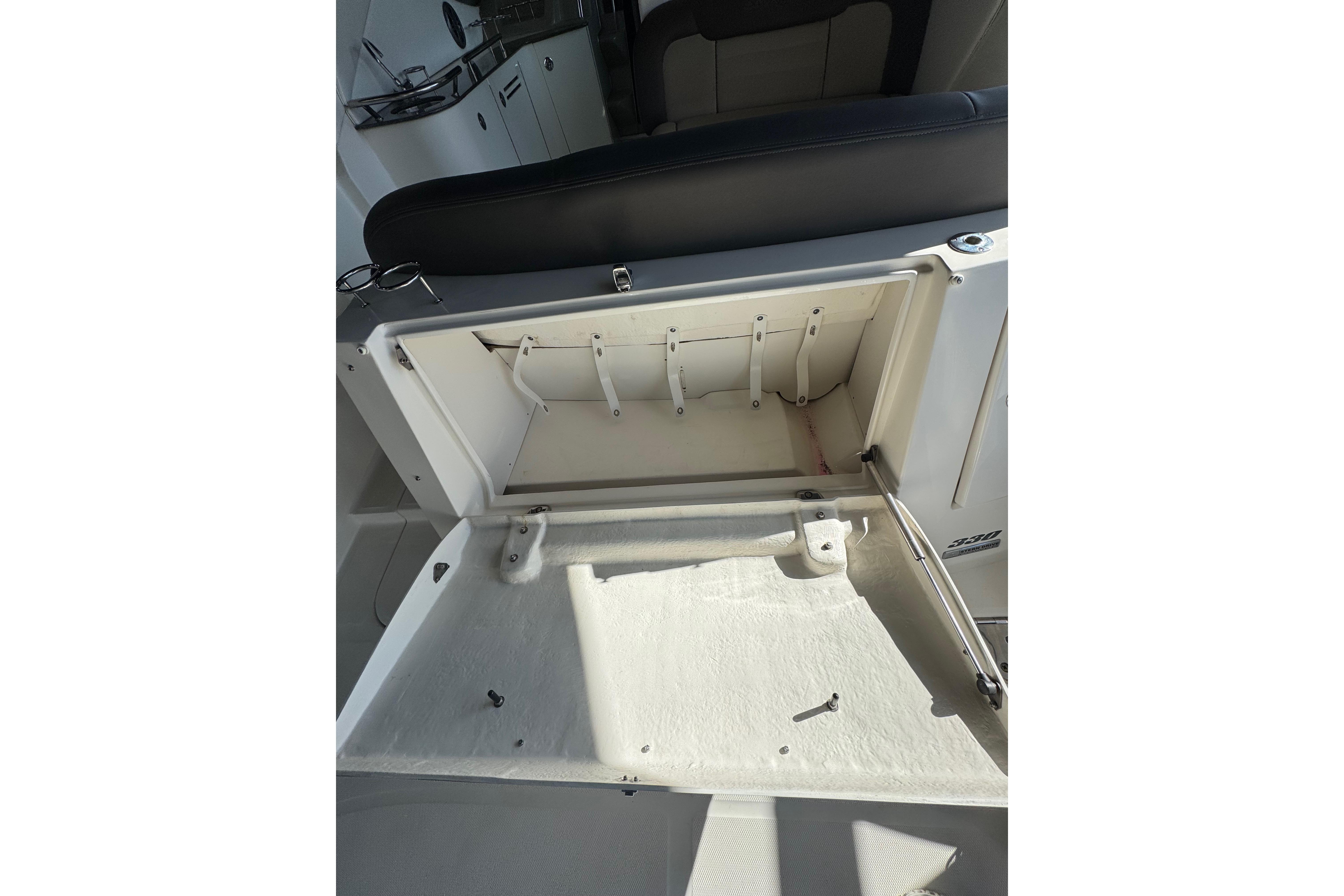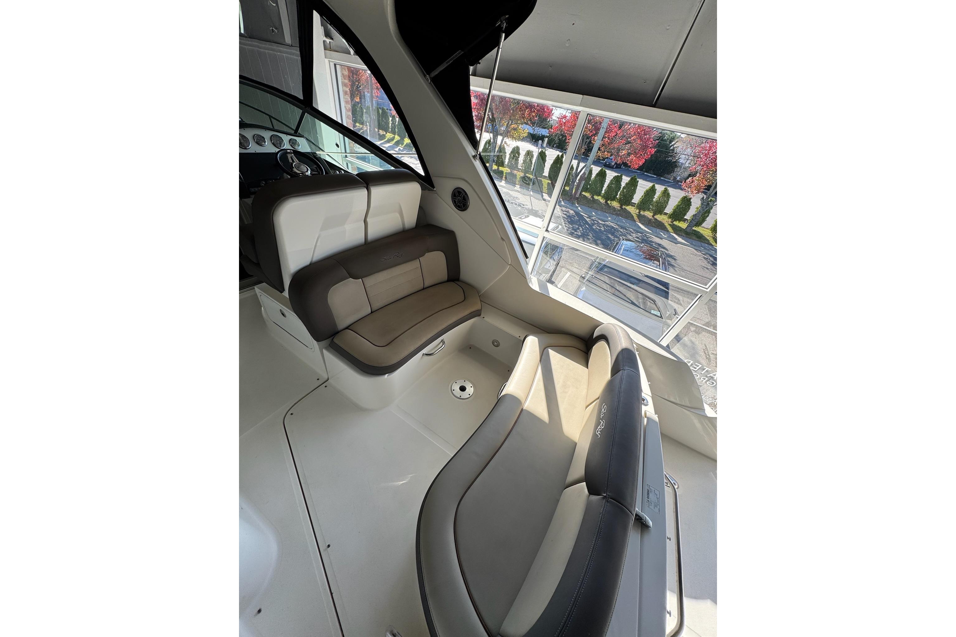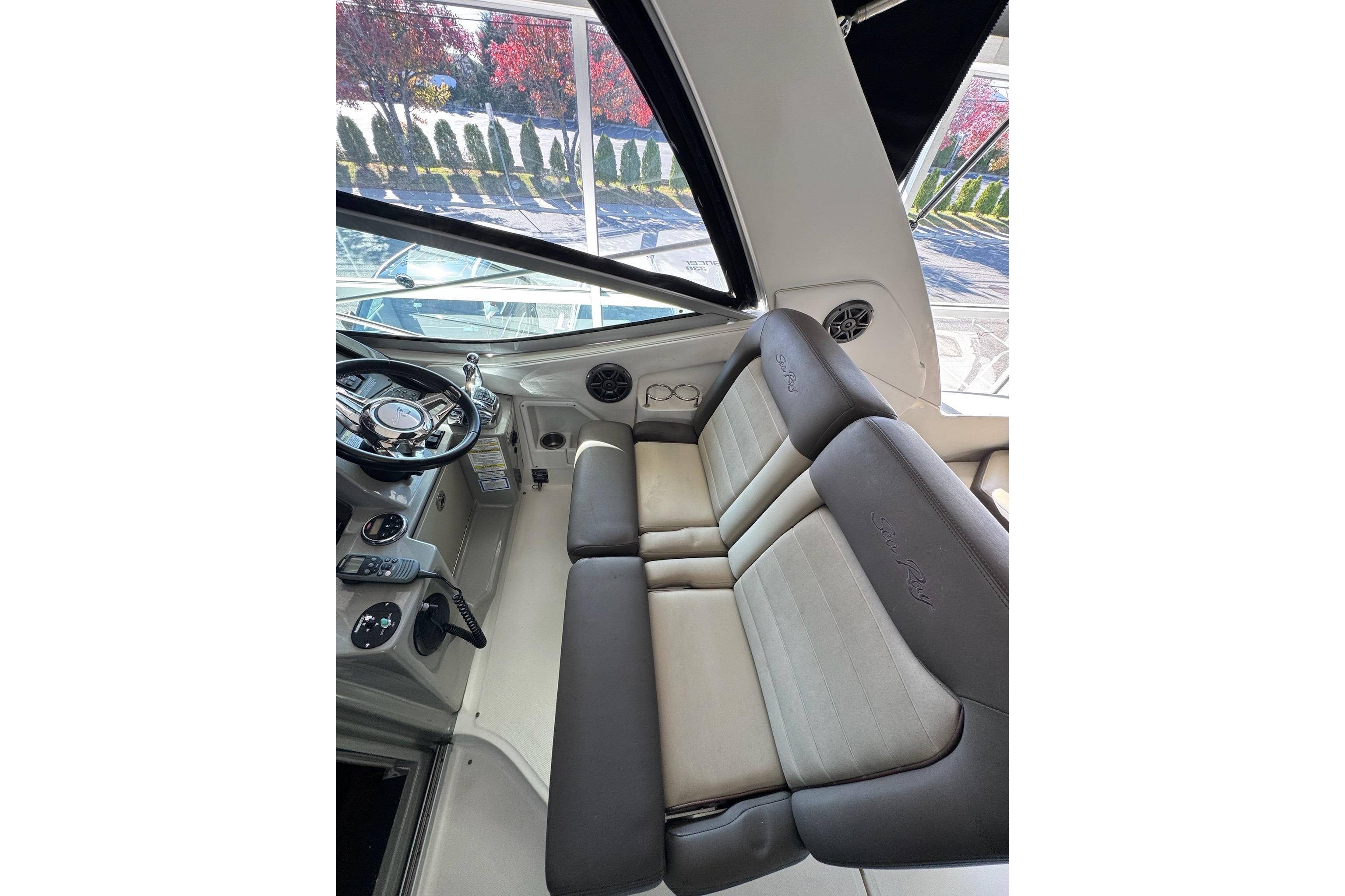 Up in the cockpit, there’s plenty of seating for everyone, with a big wraparound bench and room to stretch out. The helm is simple and clean, so driving it feels natural.This 2014 Sea Ray 330 Sundancer is the perfect all-around cruiser for weekends on the water. super comfortable layout that makes entertaining with friends or family really easy.