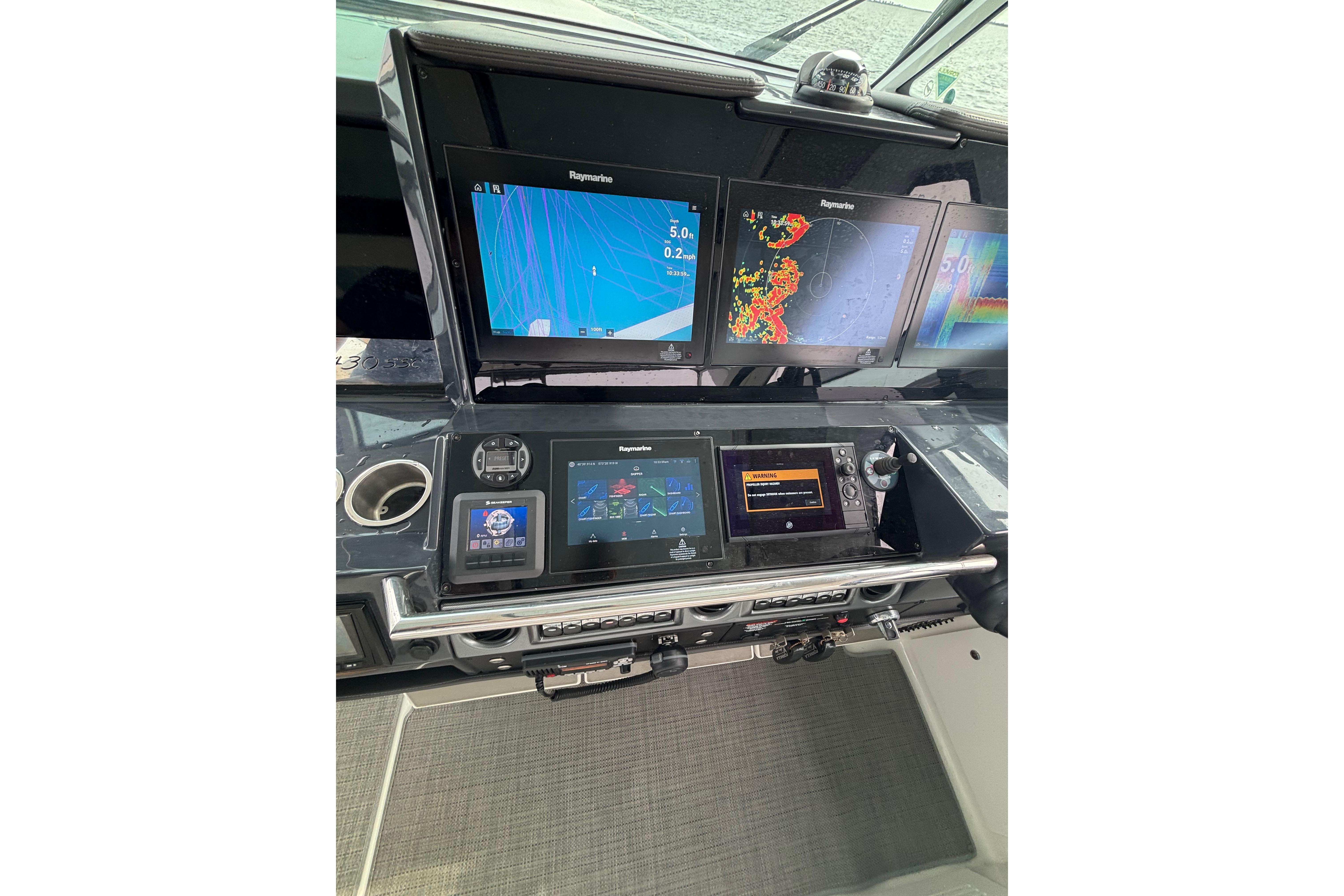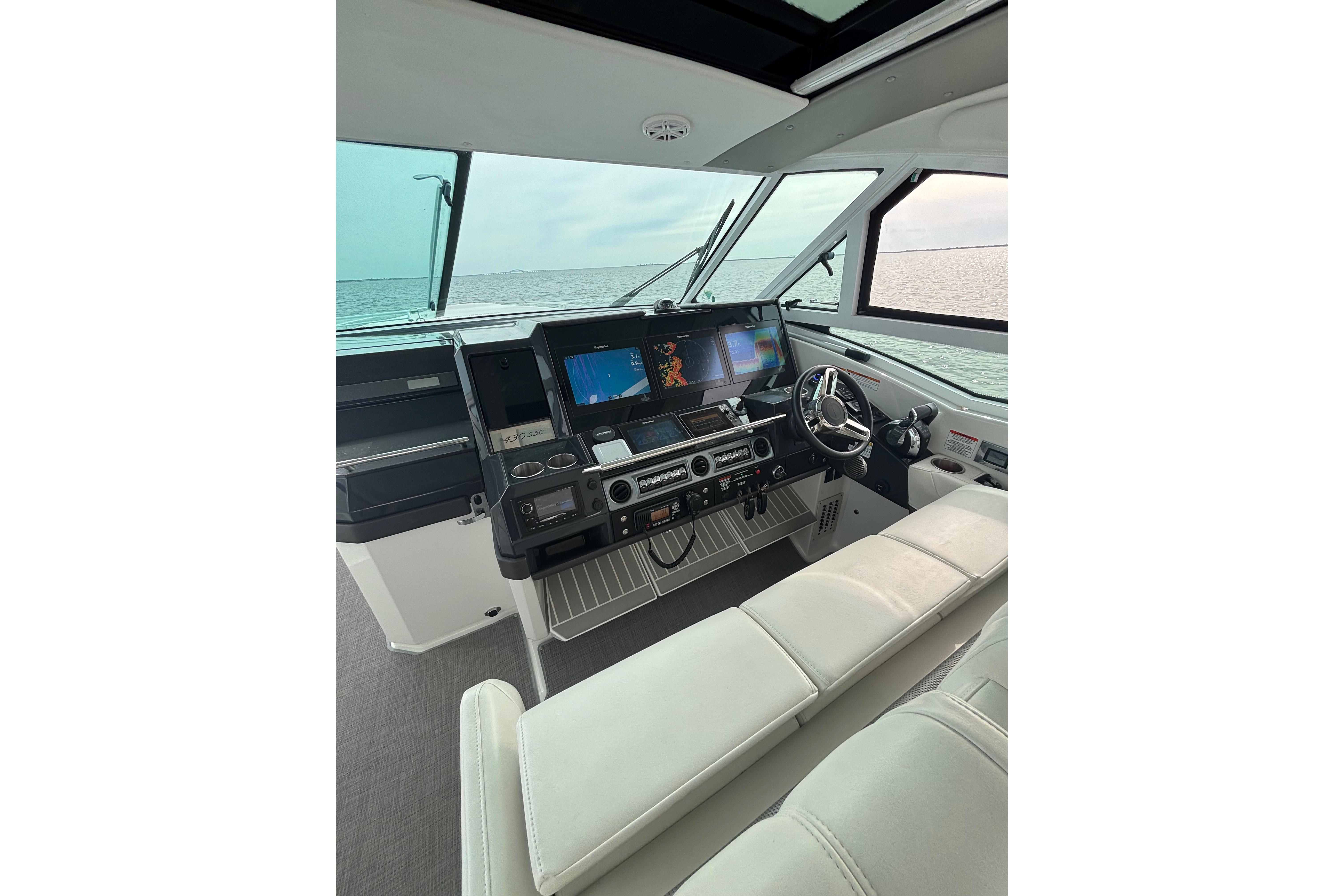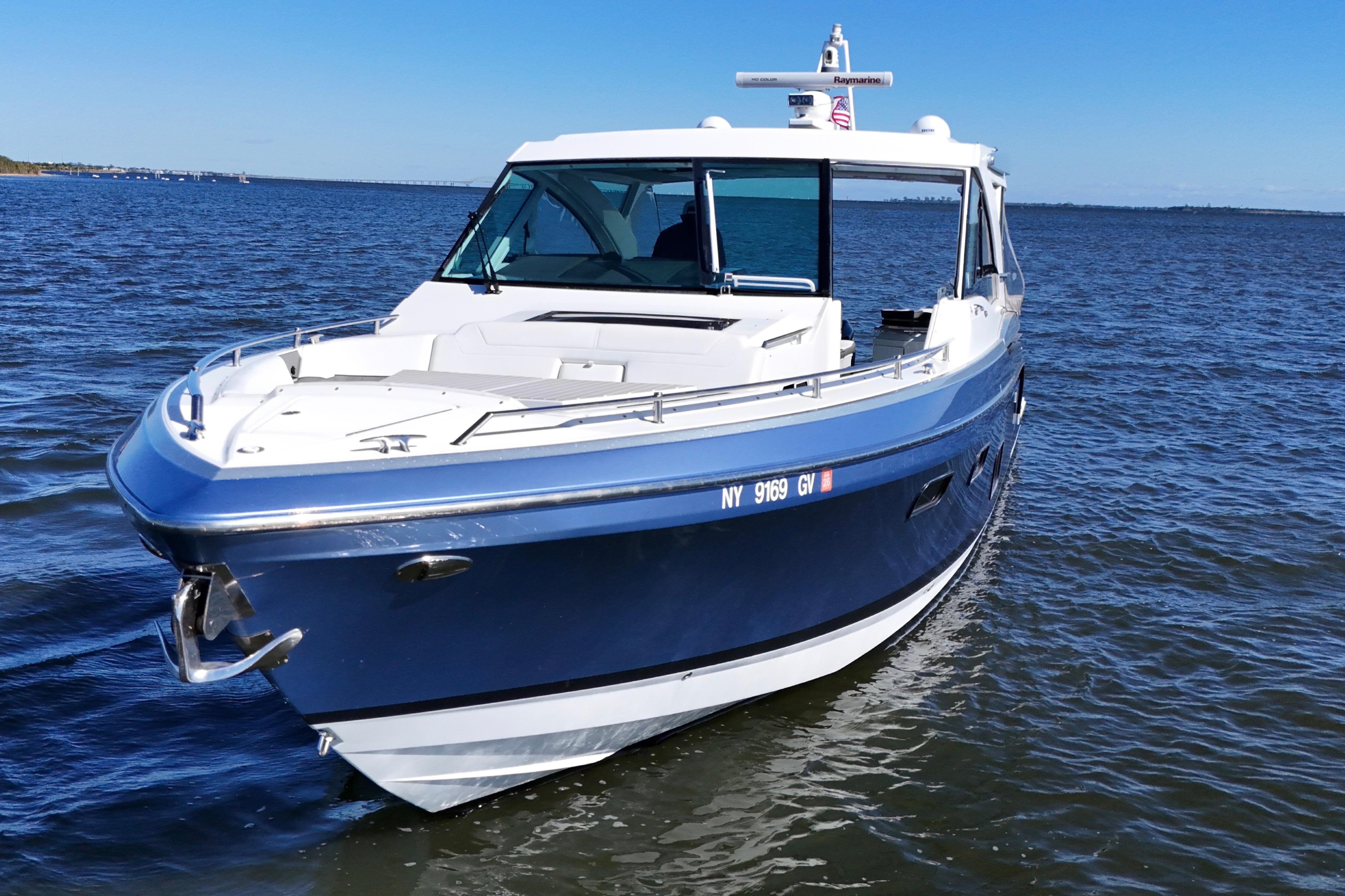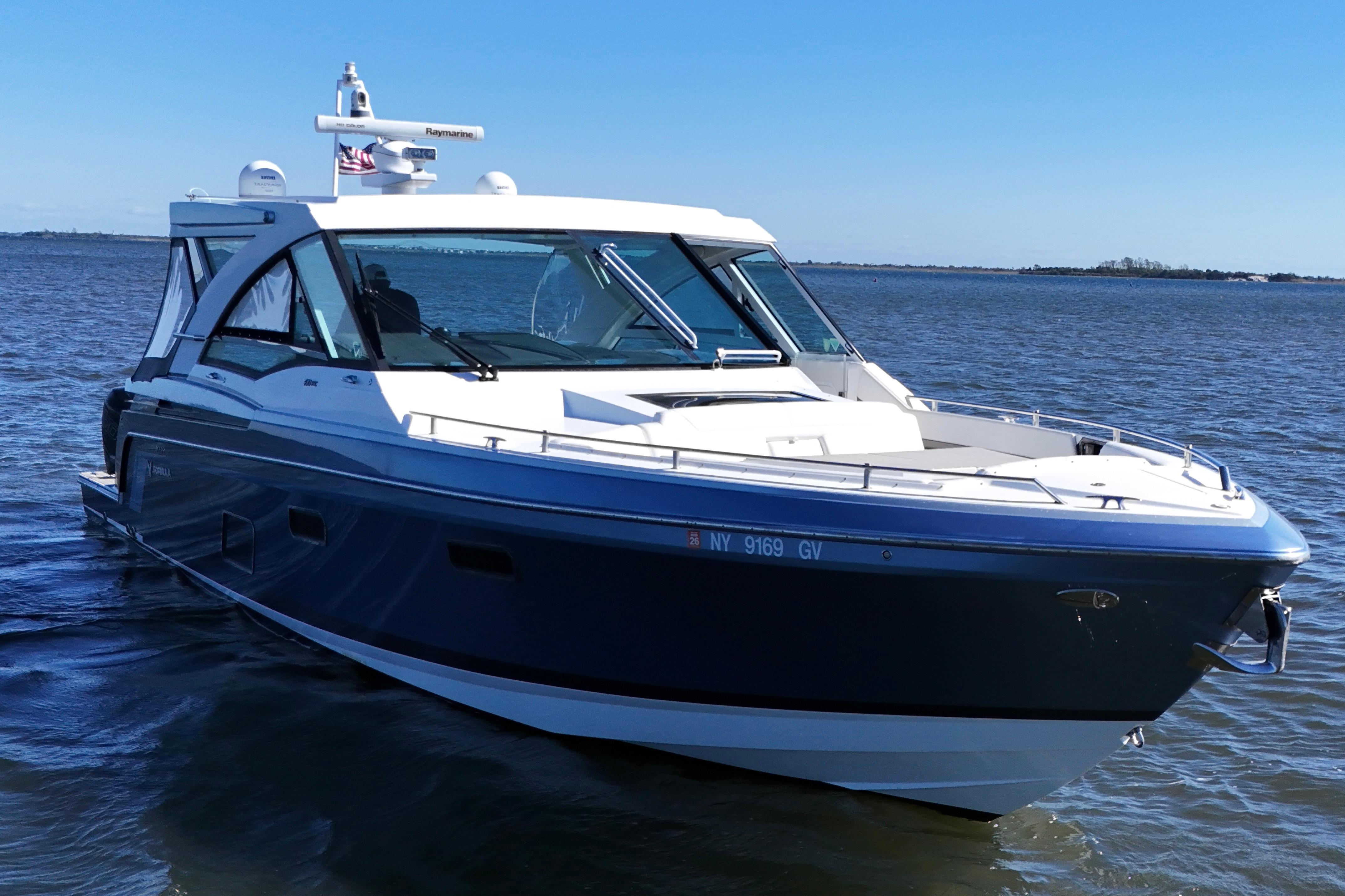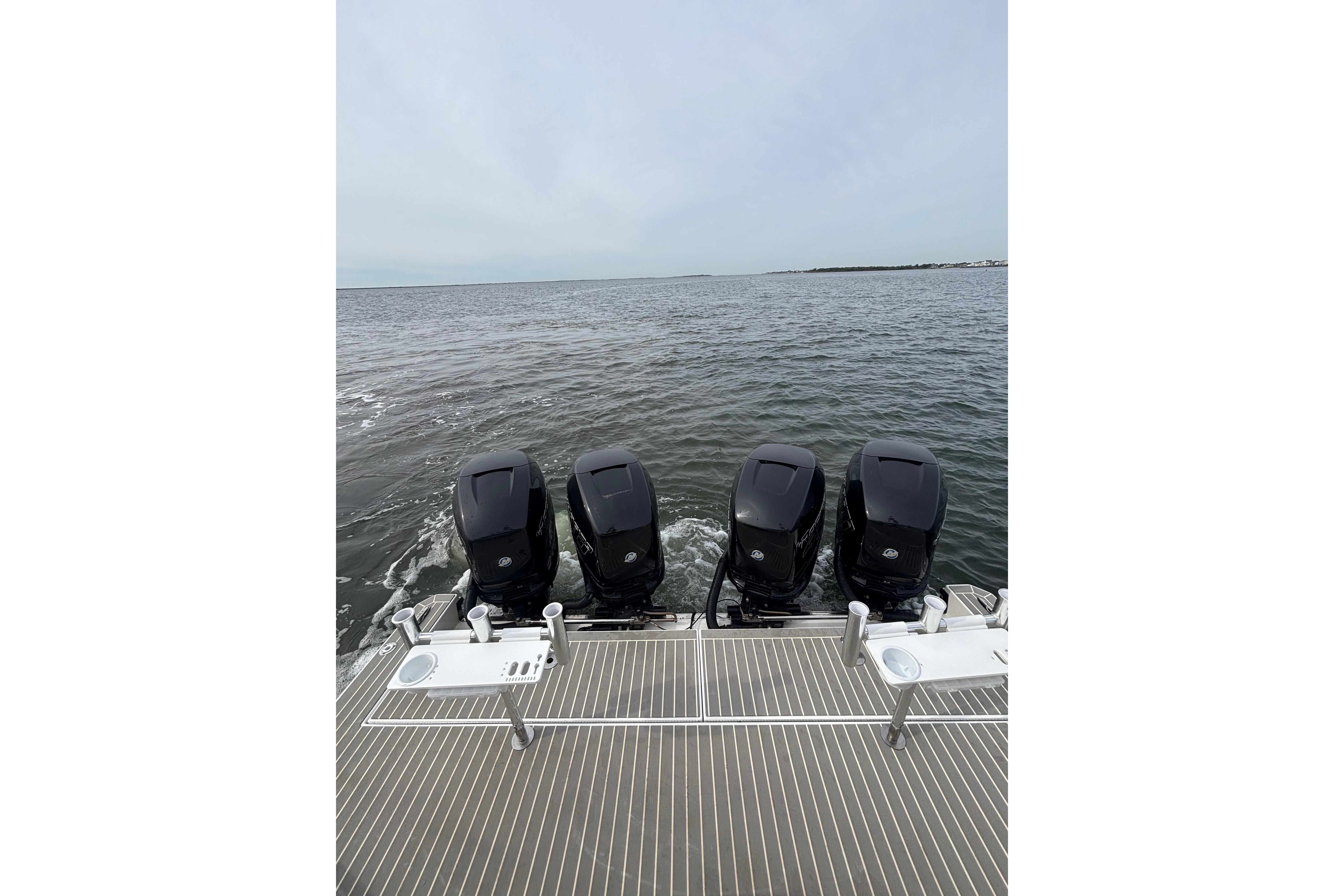 Introducing the 2017 Formula 430 Super Sport Crossover, a stunning cruiser that combines elegance with high performance. With an overall length of 43 feet, this vessel boasts a sleek fiberglass hull designed in a Deep Vee shape, ensuring a smooth ride even in choppy waters. Powered by four Mercury Verado 400R outboard engines, each delivering 400 horsepower, it reaches cruising speeds of 40 mph and a maximum hull speed of 65 mph, making it perfect for thrilling adventures on the water. Accommodating up to 12 guests, this boat features two cabins and one head, providing comfort for extended outings. An electric windlass enhances convenience, while the joystick control adds to the ease of maneuverability. With only 300 hours of use, this used cruiser is ready for new adventures, offering a perfect blend of luxury and performance for discerning boaters. Experience the joy of cruising with the Formula 430 Super Sport Crossover!