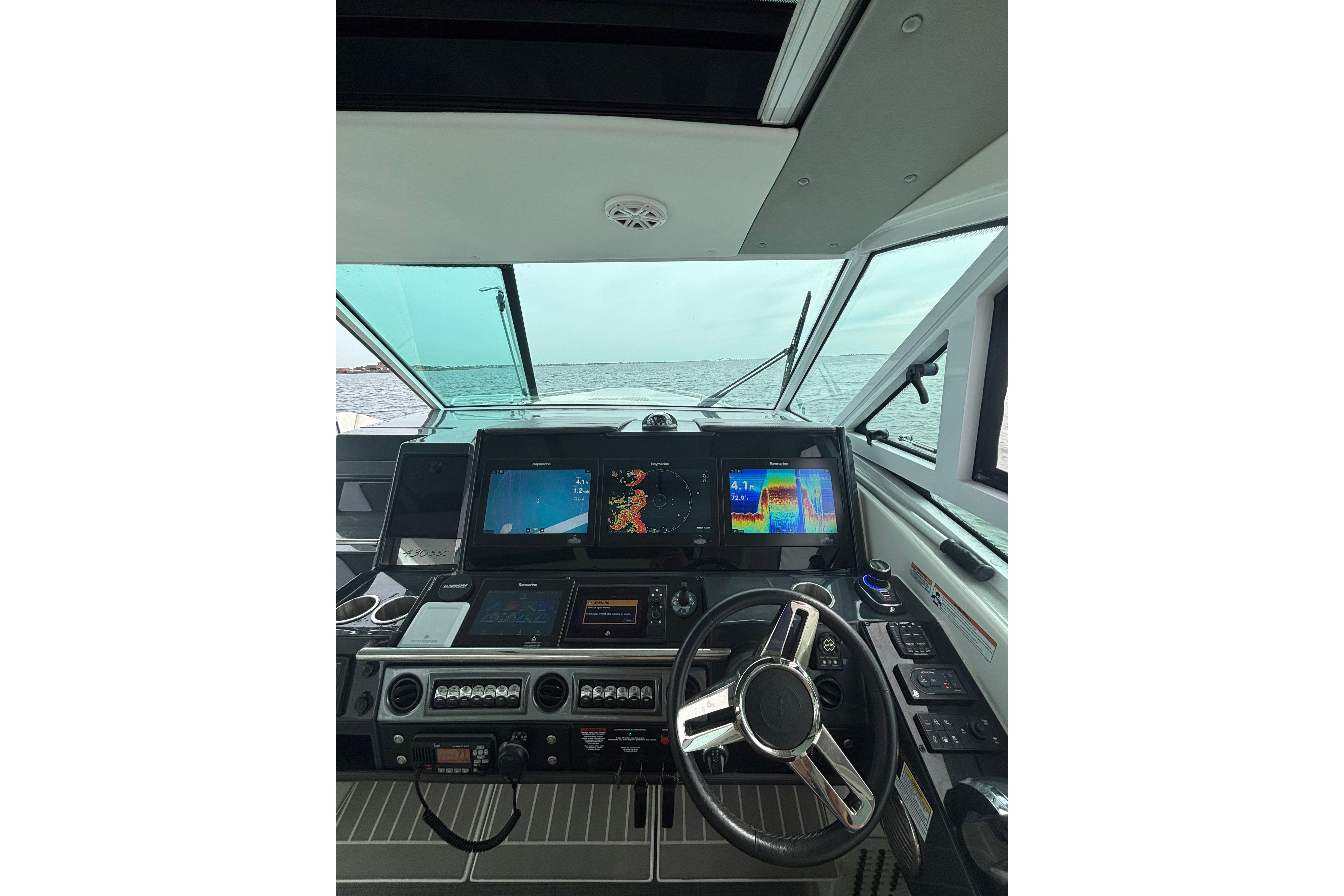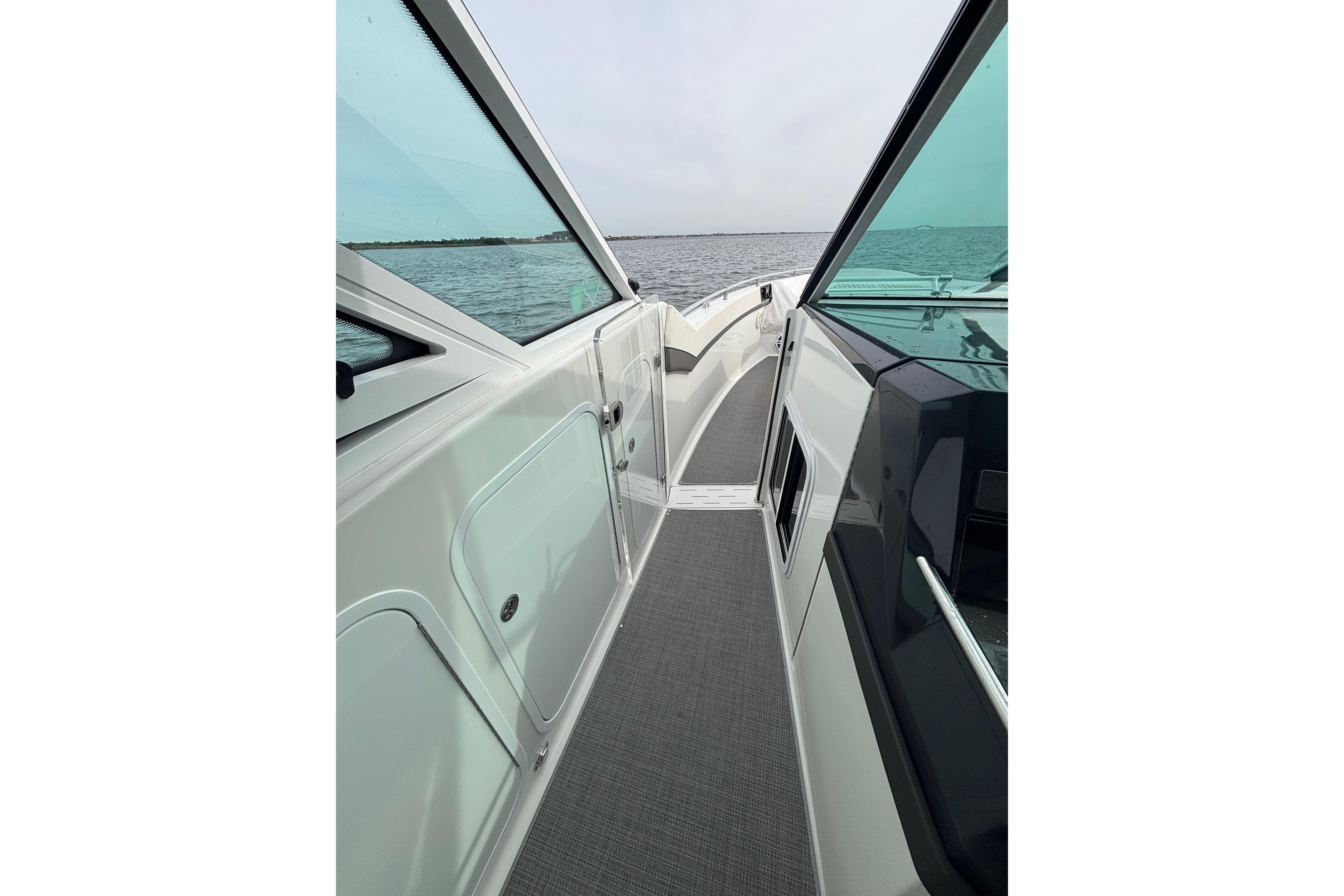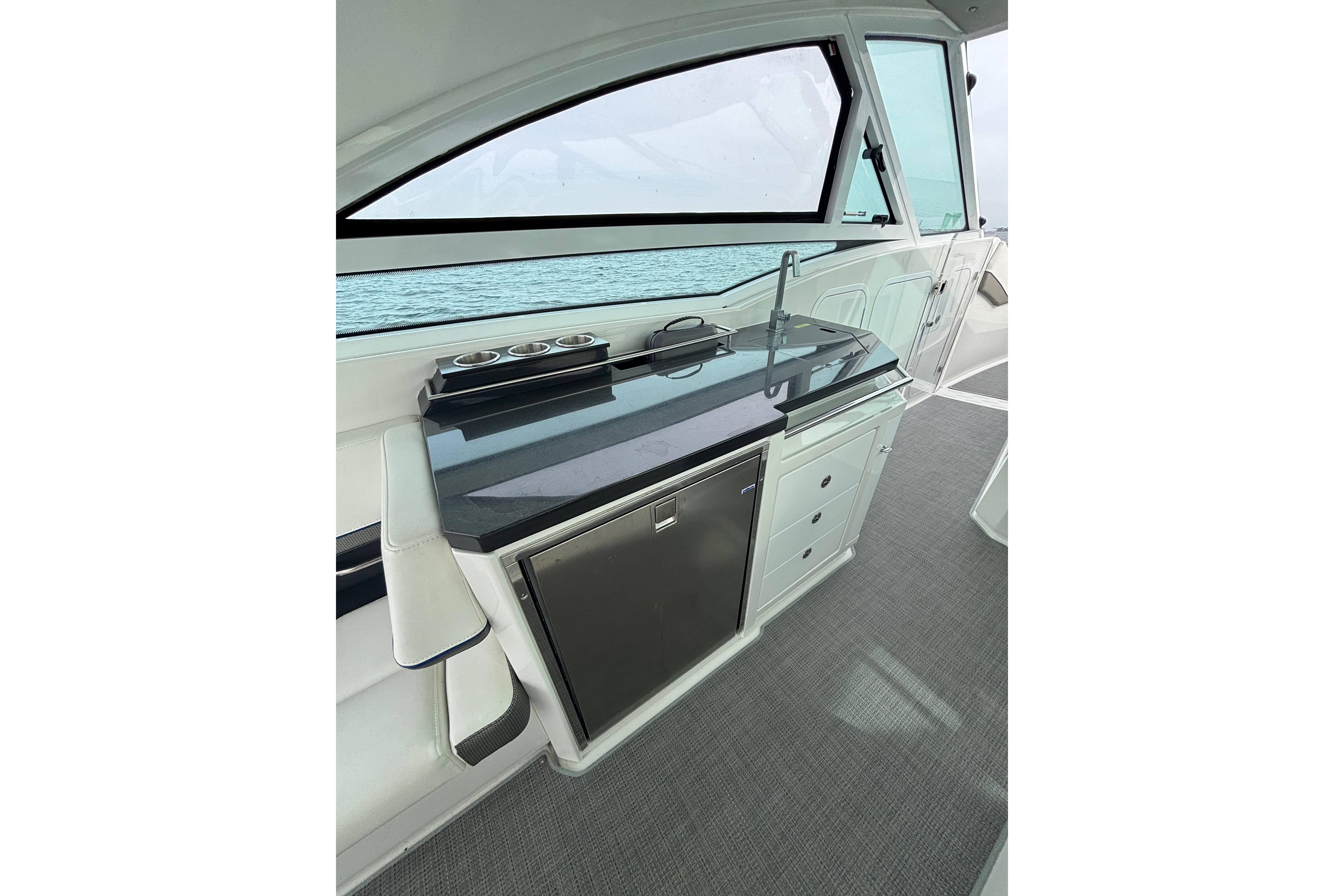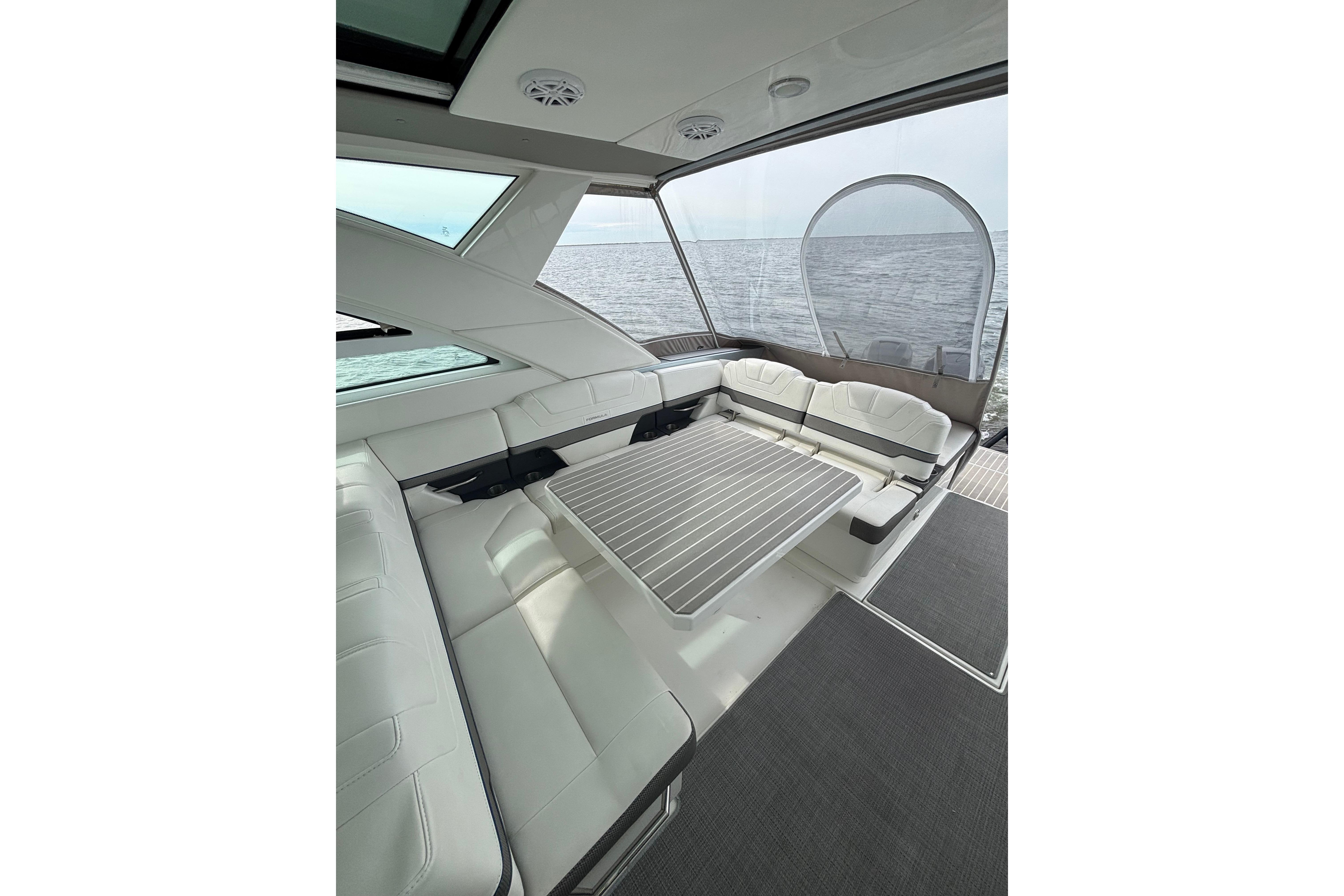 Introducing the 2017 Formula 430 Super Sport Crossover, a stunning cruiser that combines elegance with high performance. With an overall length of 43 feet, this vessel boasts a sleek fiberglass hull designed in a Deep Vee shape, ensuring a smooth ride even in choppy waters. Powered by four Mercury Verado 400R outboard engines, each delivering 400 horsepower, it reaches cruising speeds of 40 mph and a maximum hull speed of 65 mph, making it perfect for thrilling adventures on the water. Accommodating up to 12 guests, this boat features two cabins and one head, providing comfort for extended outings. An electric windlass enhances convenience, while the joystick control adds to the ease of maneuverability. With only 300 hours of use, this used cruiser is ready for new adventures, offering a perfect blend of luxury and performance for discerning boaters. Experience the joy of cruising with the Formula 430 Super Sport Crossover!