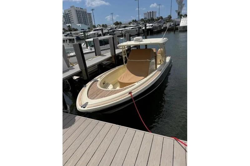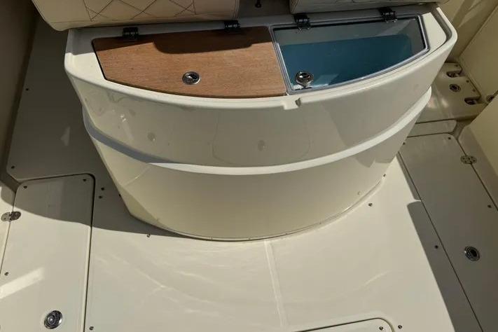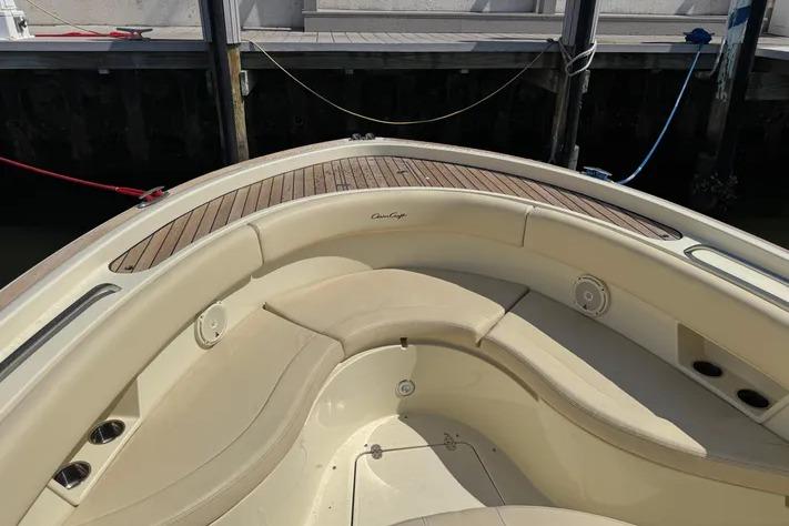 Turn heads on the water with this stunning Chris-Craft 30 Catalina, featuring the Original Champagne Metallic Painted Hull and Heritage Trim Edition with beautiful teak accents throughout. This boat blends timeless design with modern performance and comfort.