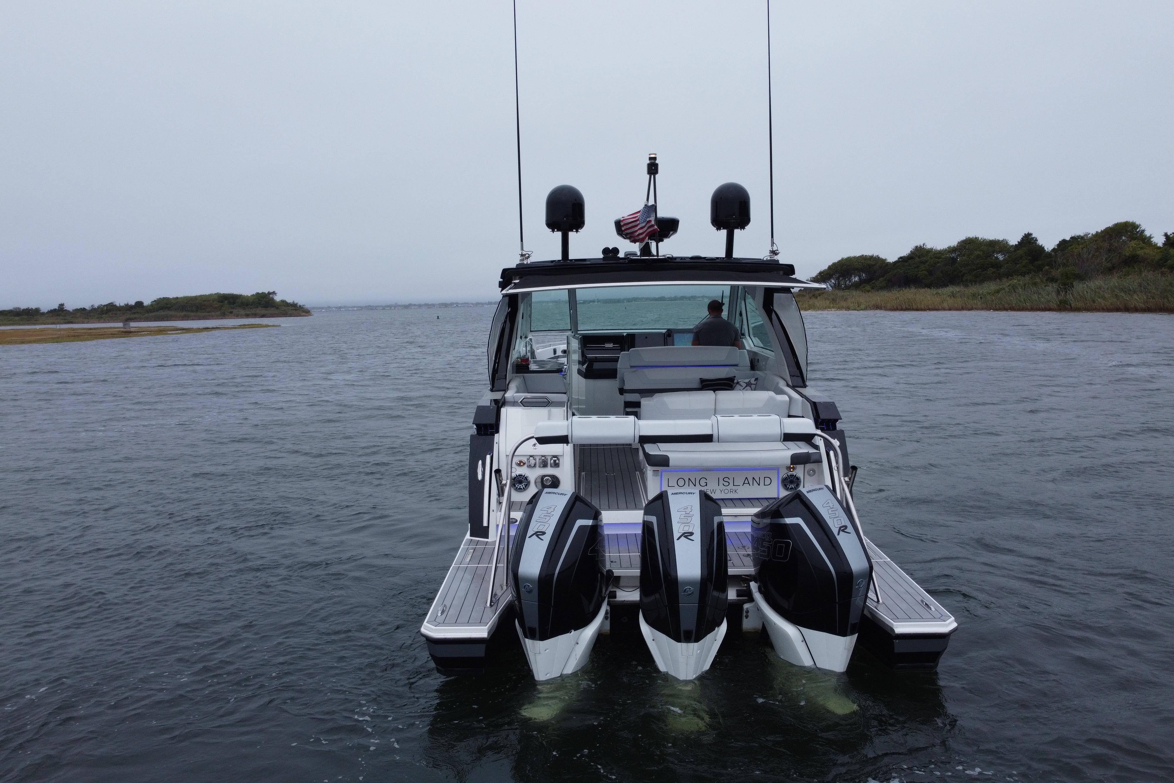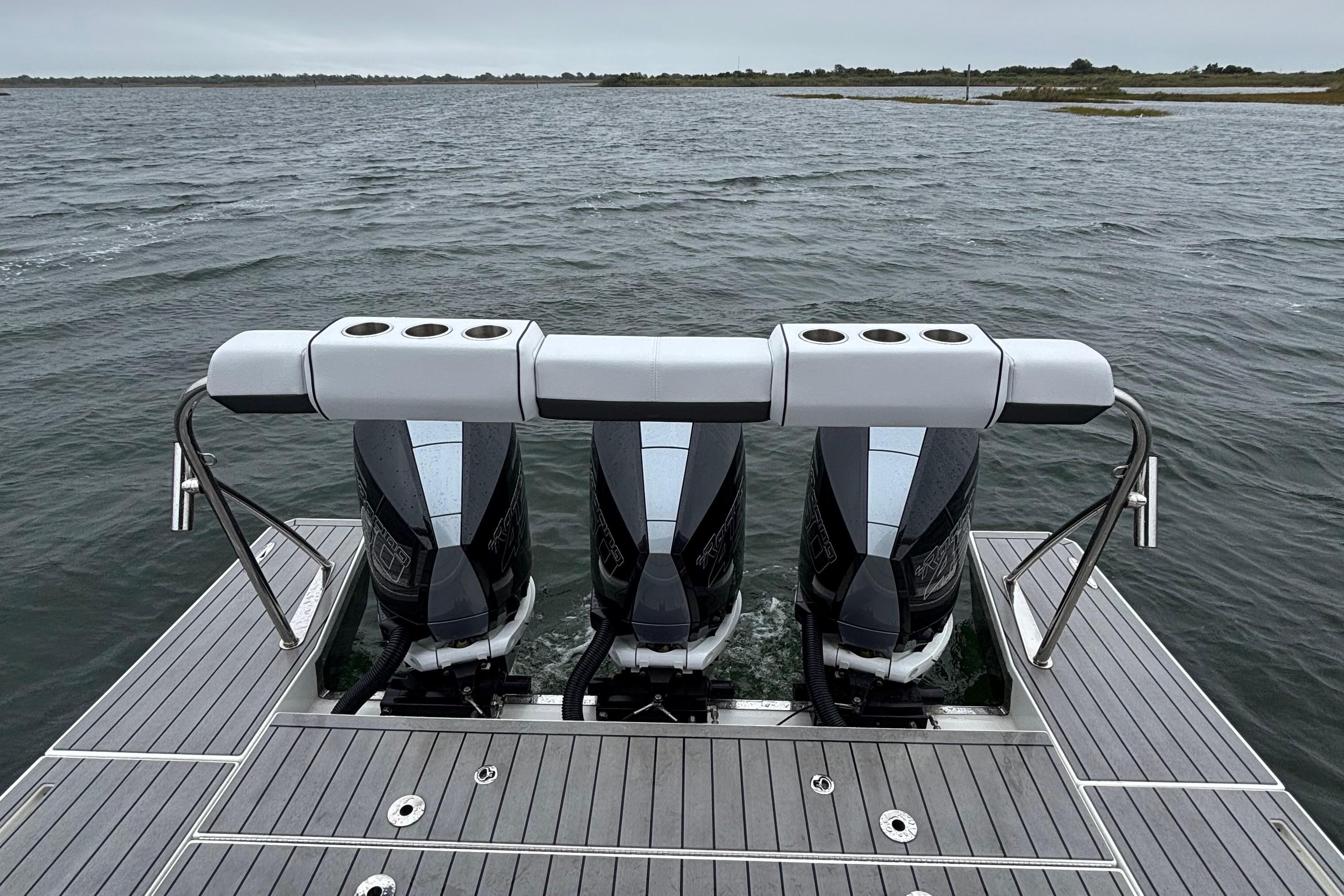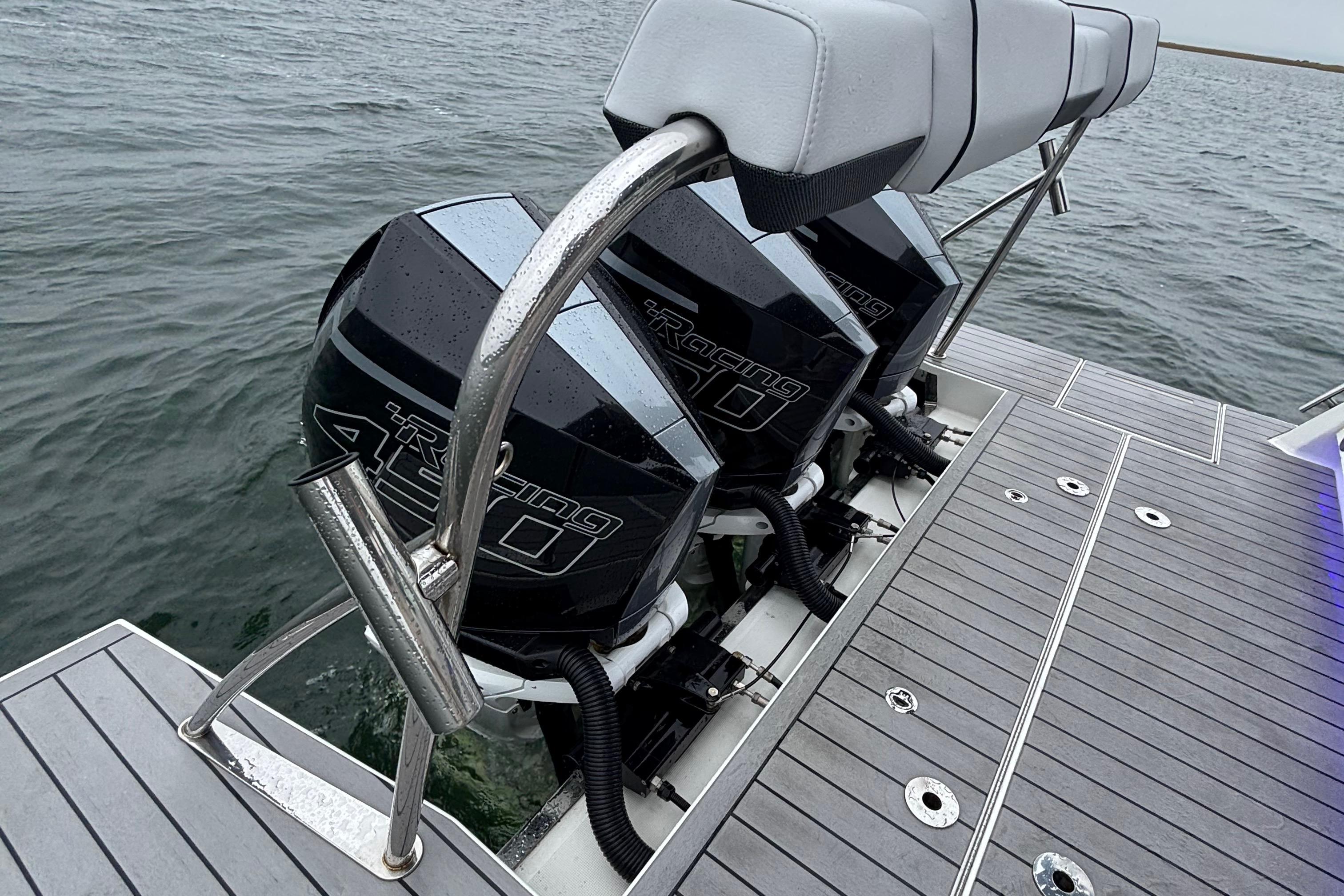 - Triple Mercury Racing 450R Outboards (White, 130 hrs)