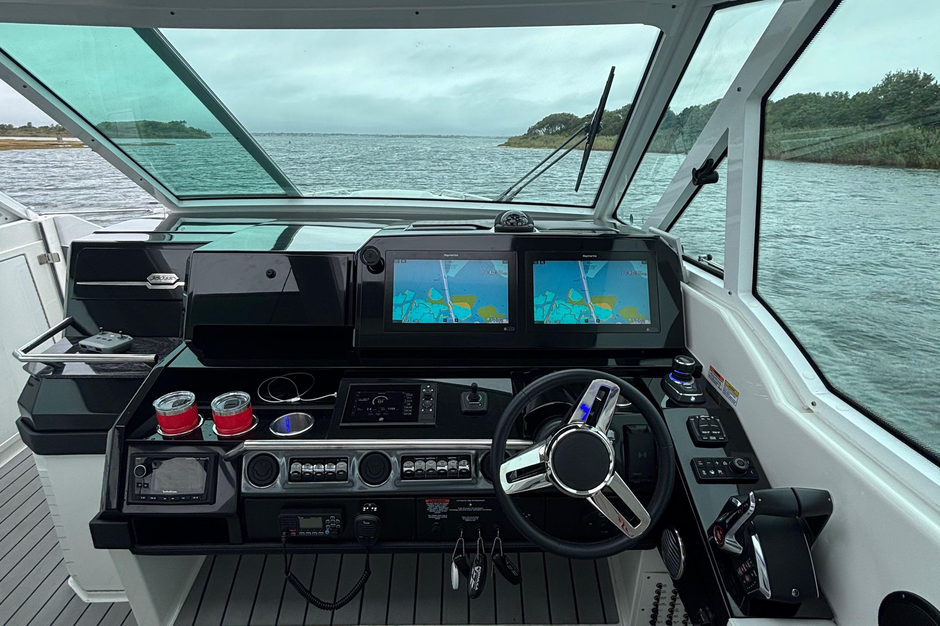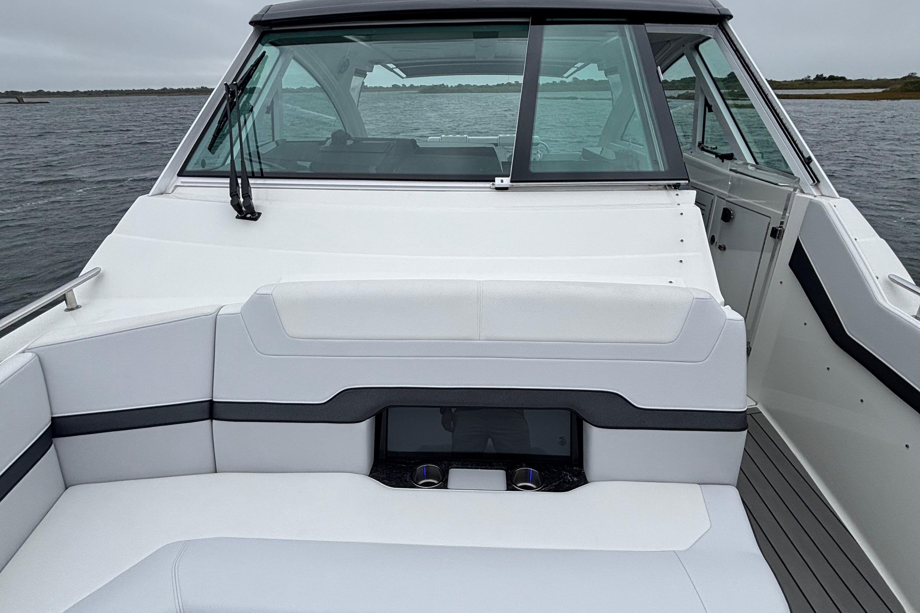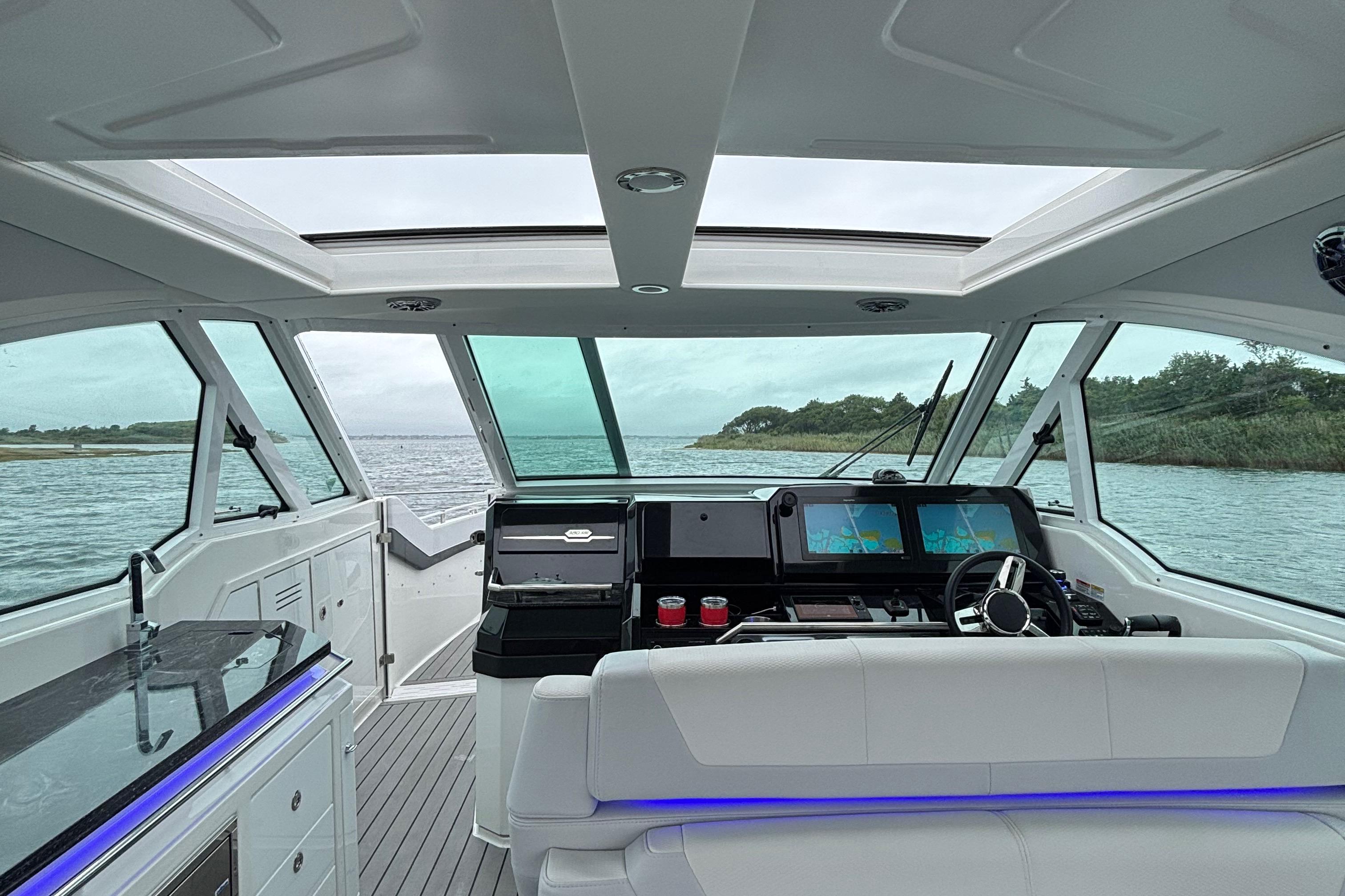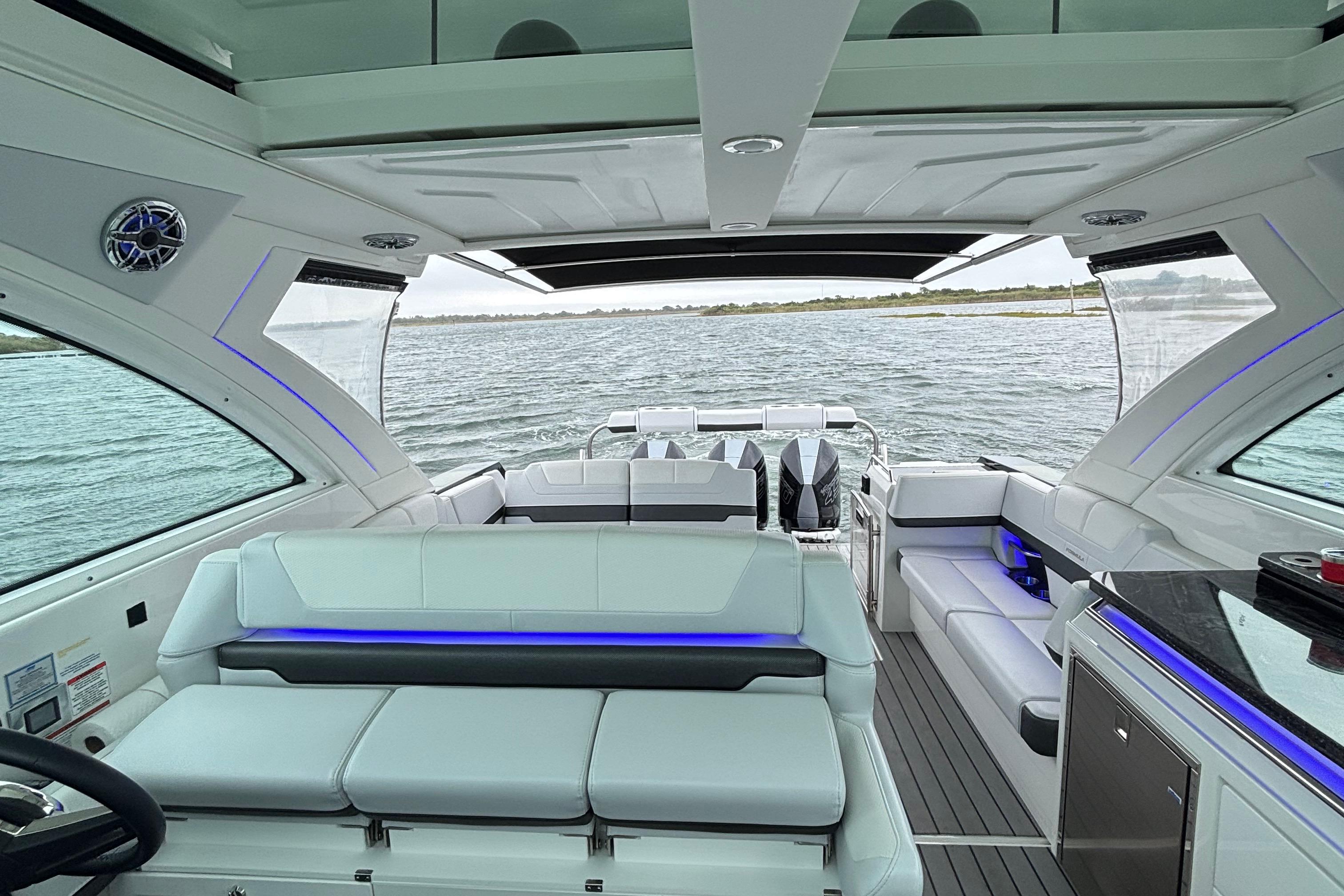 Loaded with premium options including dual Raymarine 16” Axiom XL displays with radar, generator, cockpit A/C, upgraded JL Audio stereo, cockpit grill, full teak flooring, SureShade, bow thruster, underwater lighting, and much more. She is turnkey and ready for her next owner.