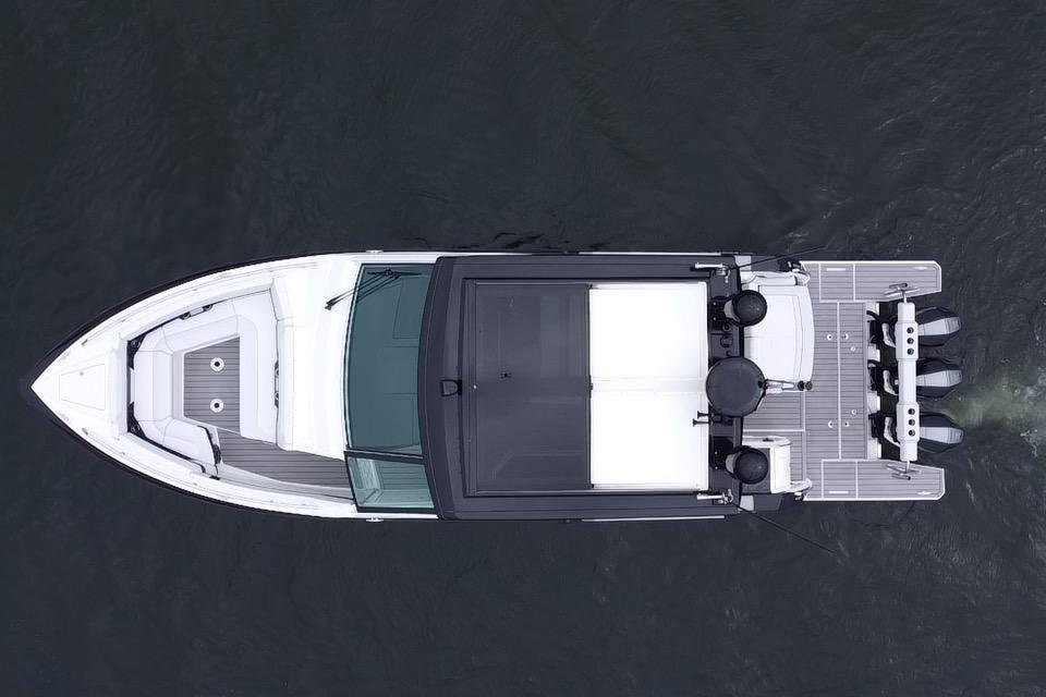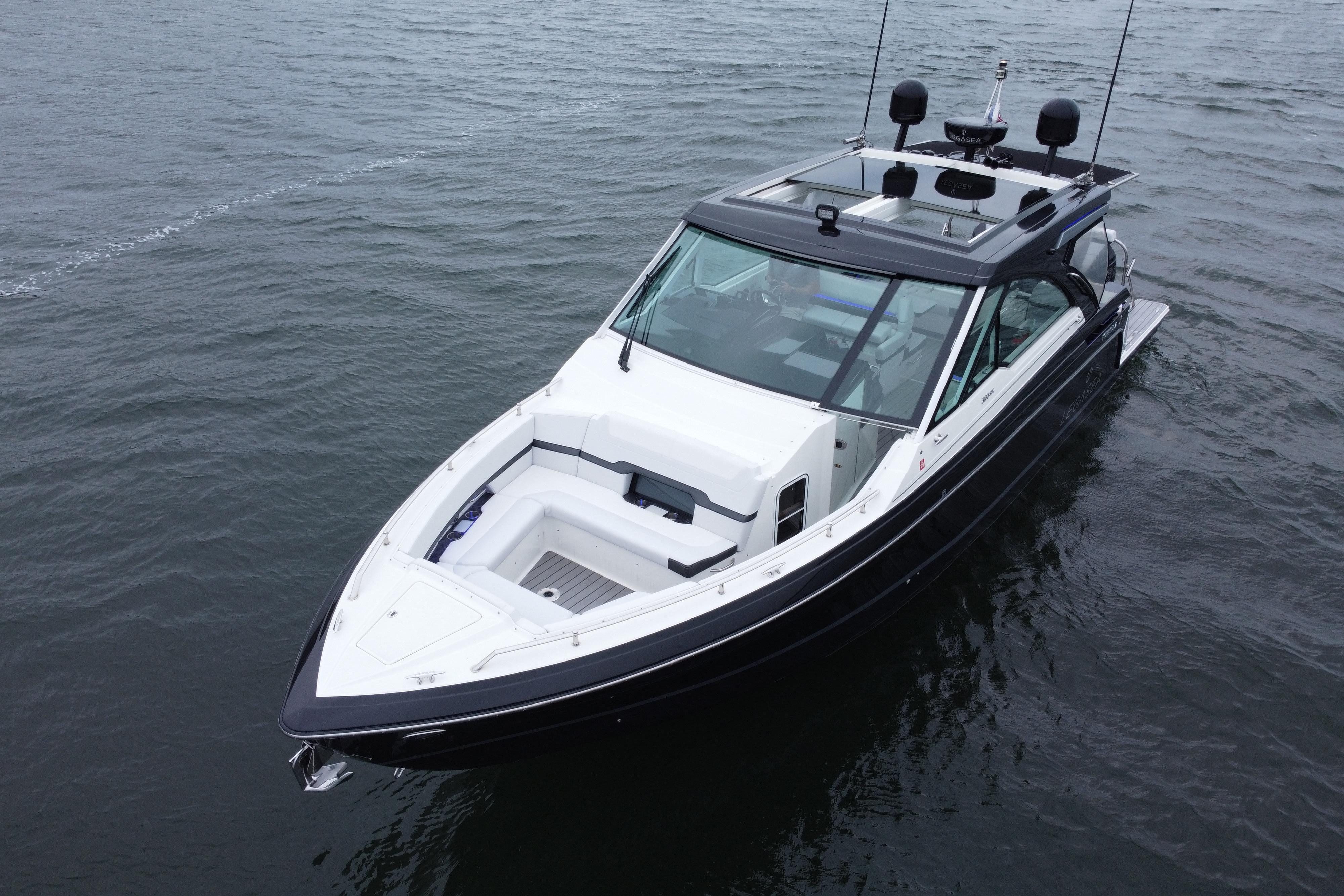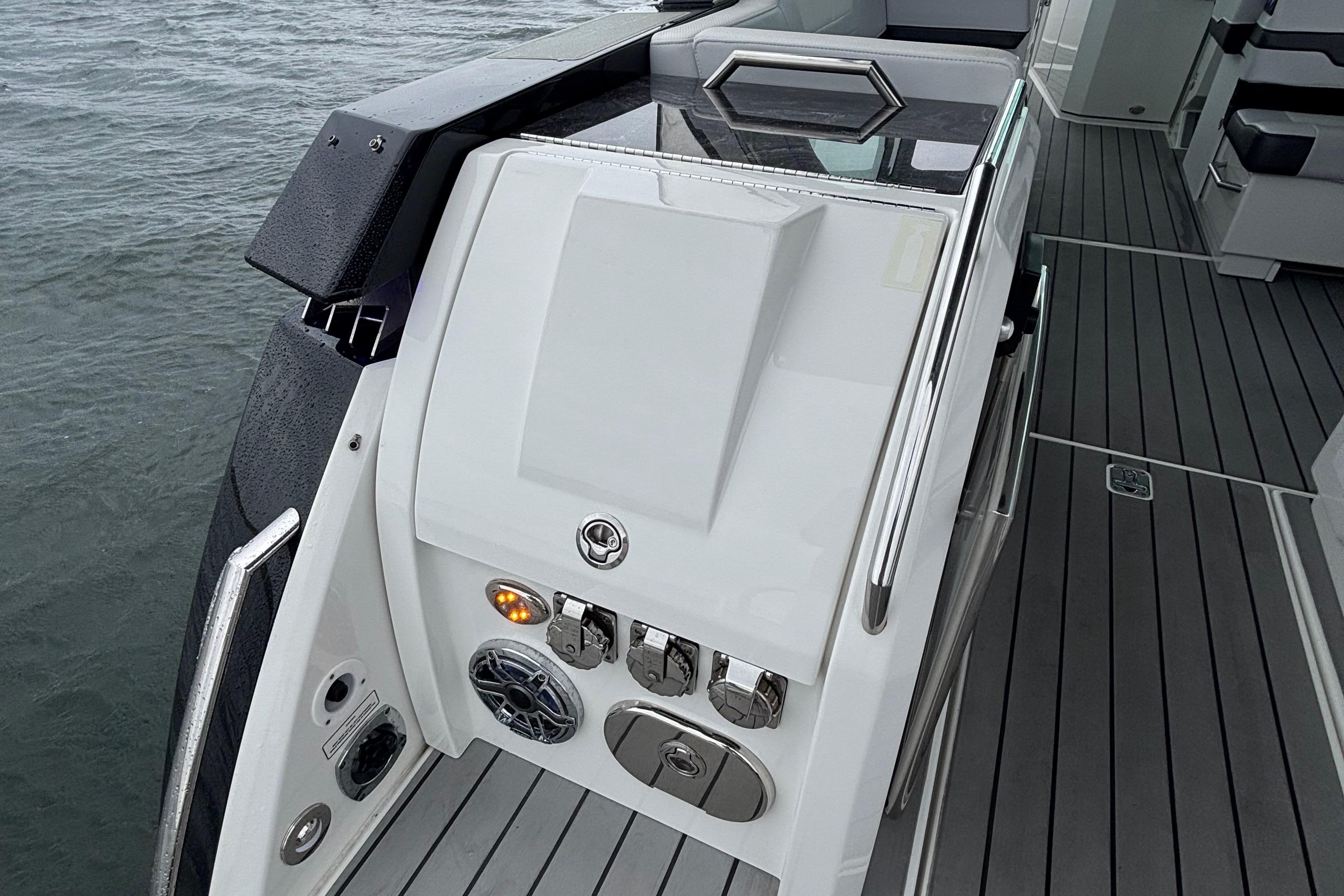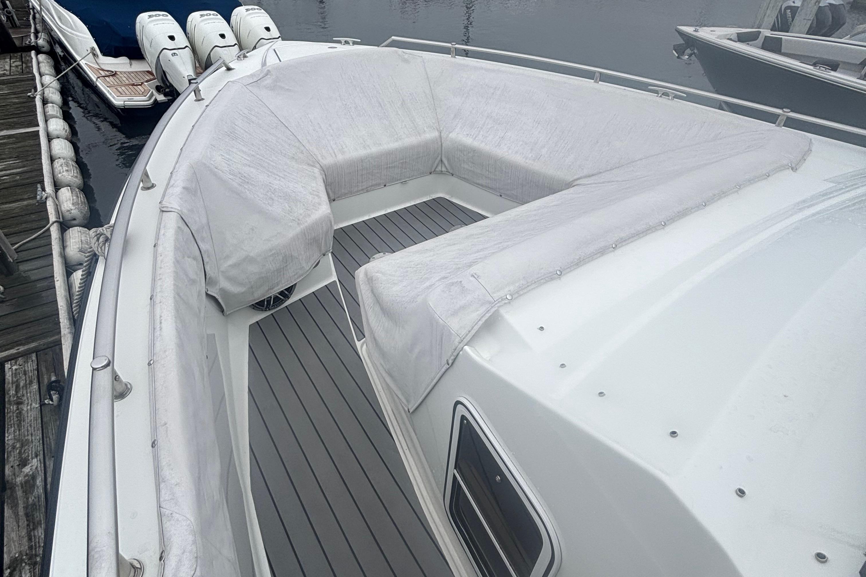 Loaded with premium options including dual Raymarine 16” Axiom XL displays with radar, generator, cockpit A/C, upgraded JL Audio stereo, cockpit grill, full teak flooring, SureShade, bow thruster, underwater lighting, and much more. She is turnkey and ready for her next owner.