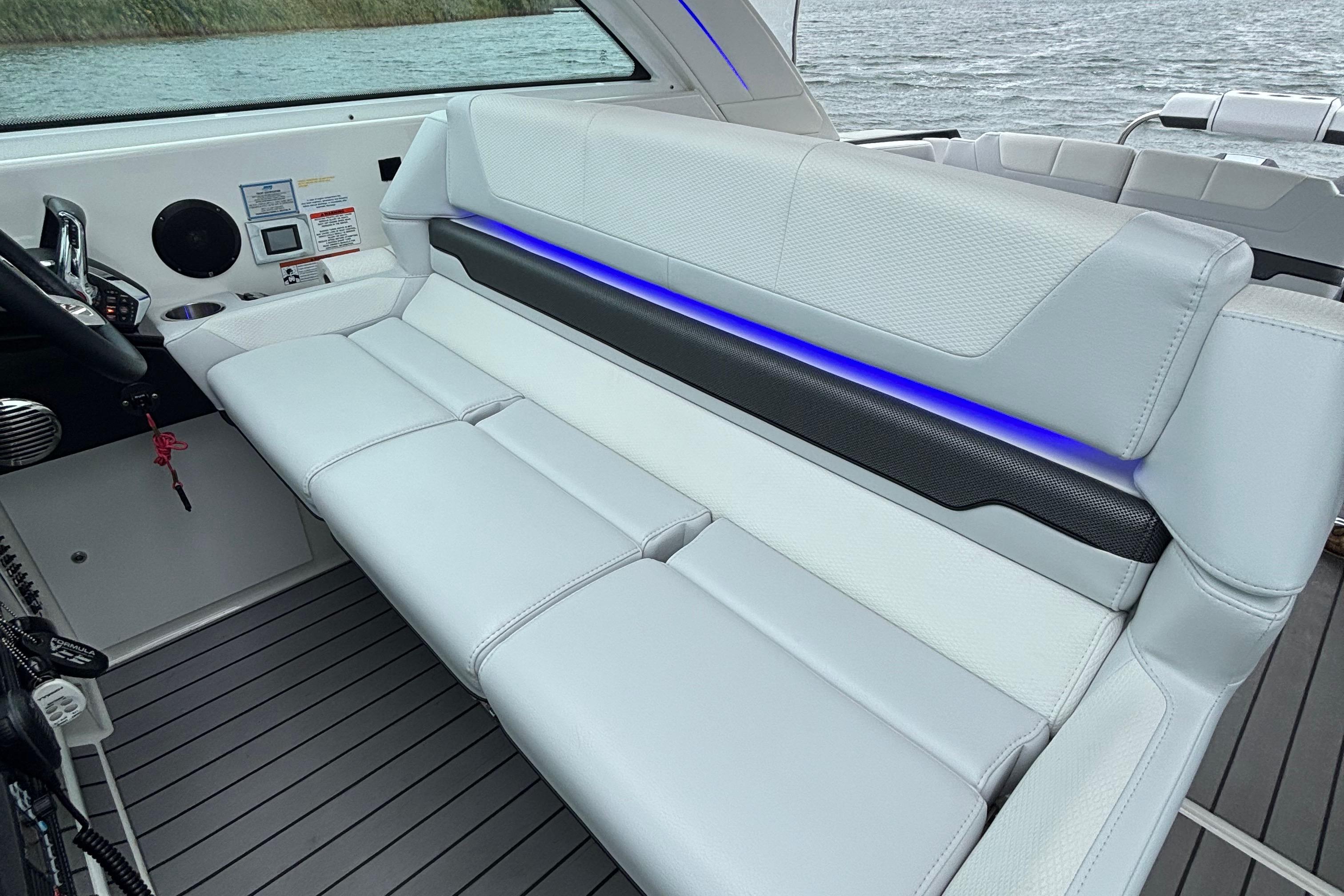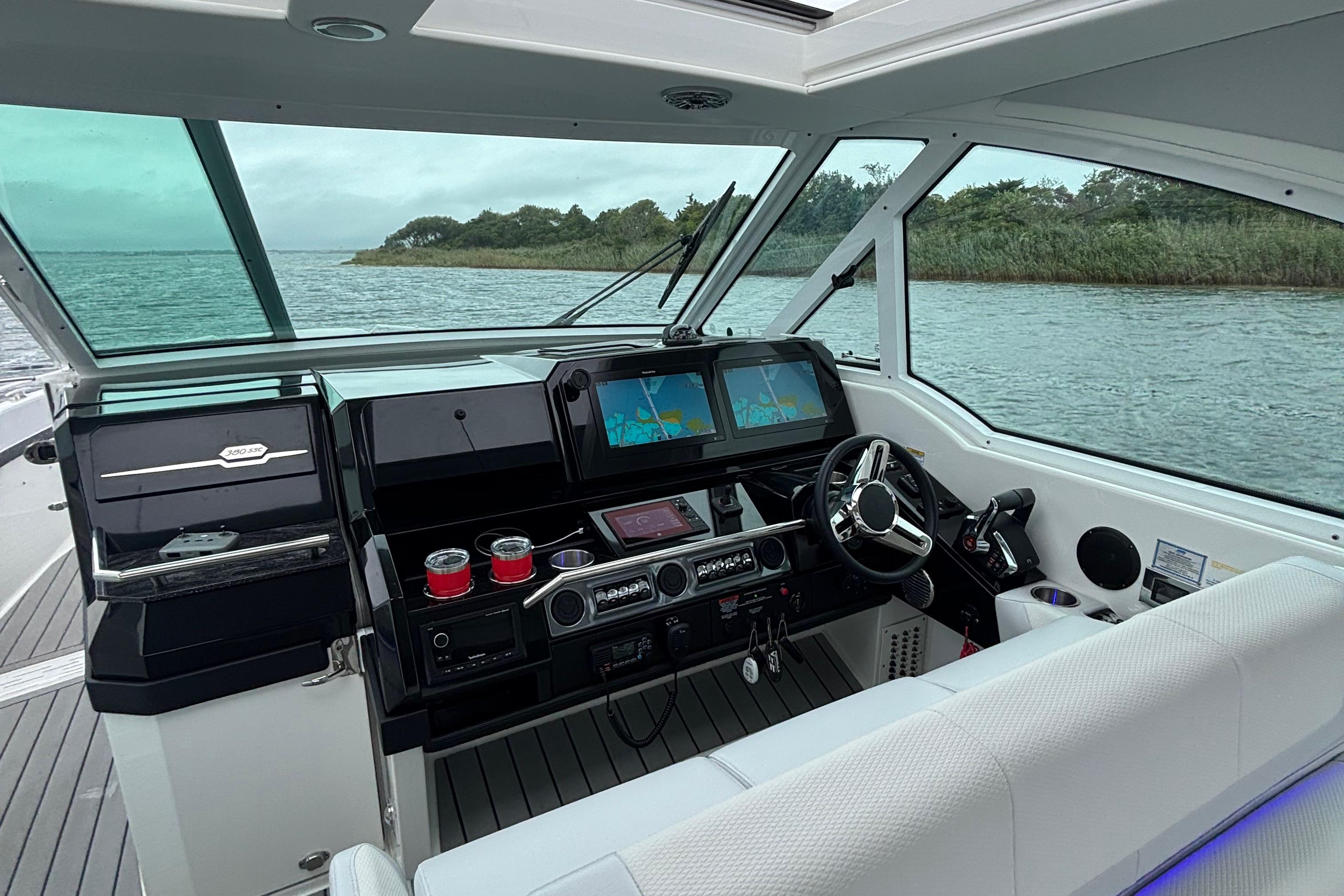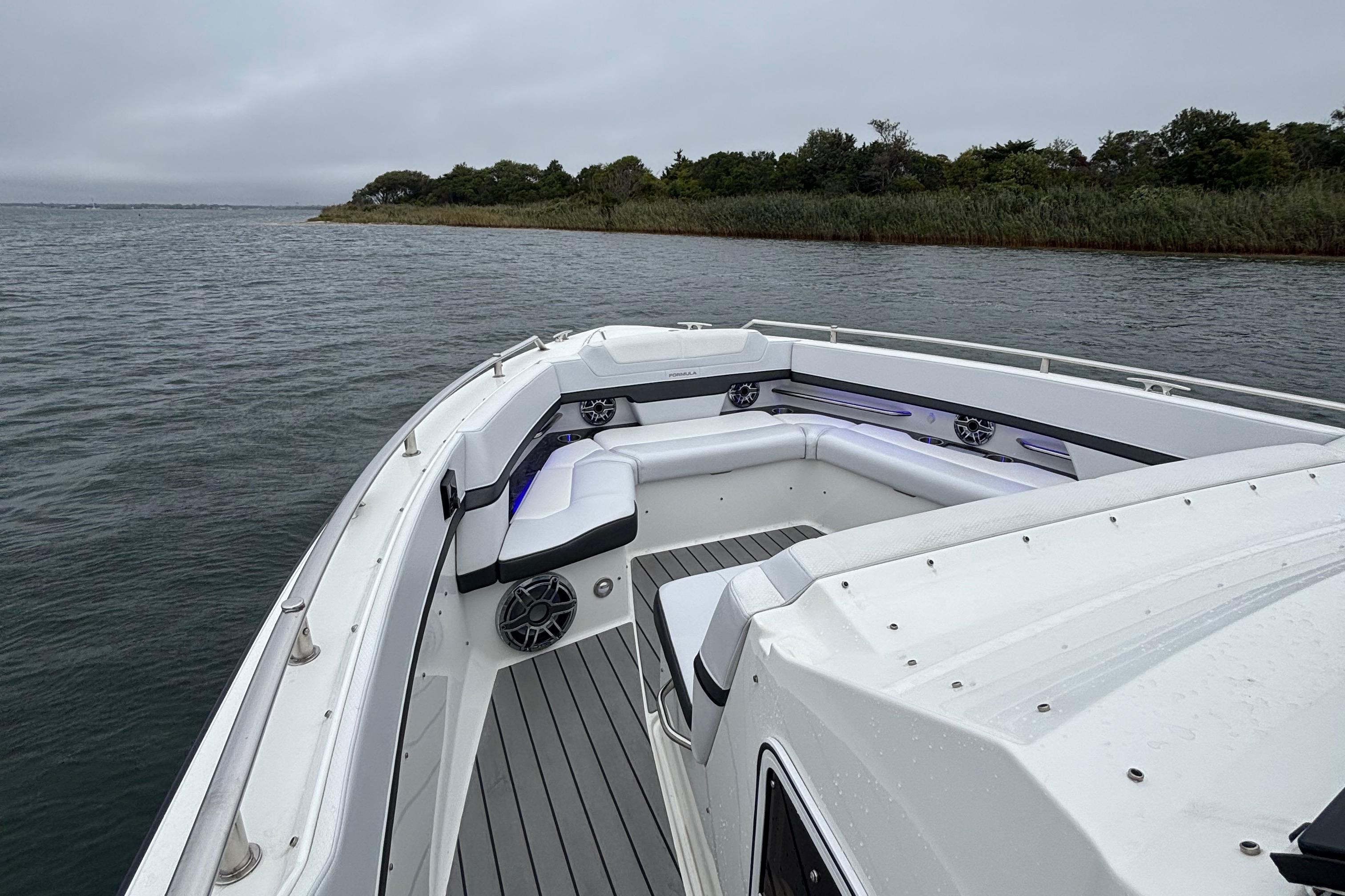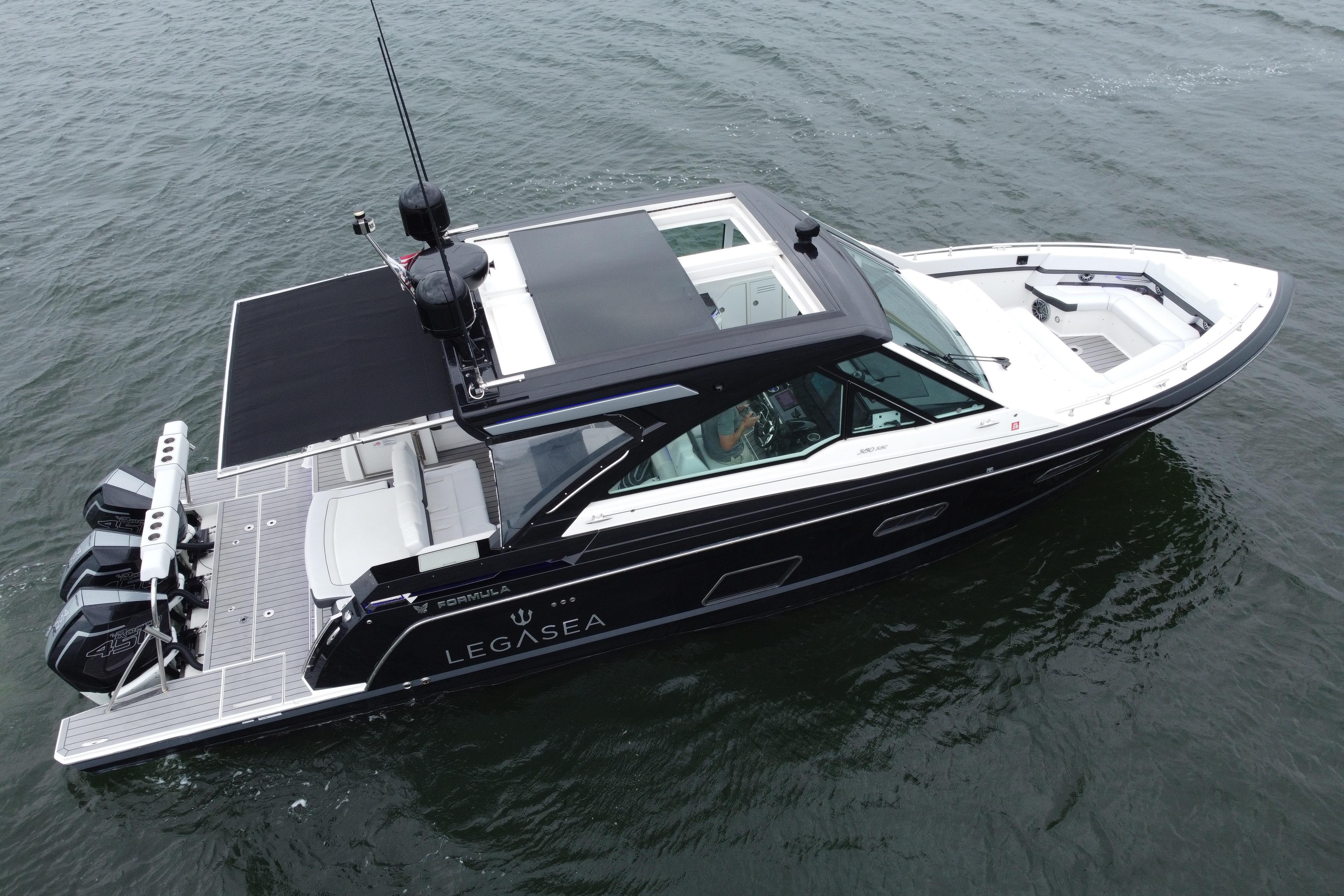 This 2022 Formula 380 SSC, powered by triple Mercury Racing 450R outboards with only 130 hours, delivers the best of both worlds: the performance and open layout of a bowrider with the overnight capability of a cruiser. The 380 SSC is one of Formula’s most versatile and desirable models, offering incredible day-boating space and comfort, while also fully equipped for extended getaways.
