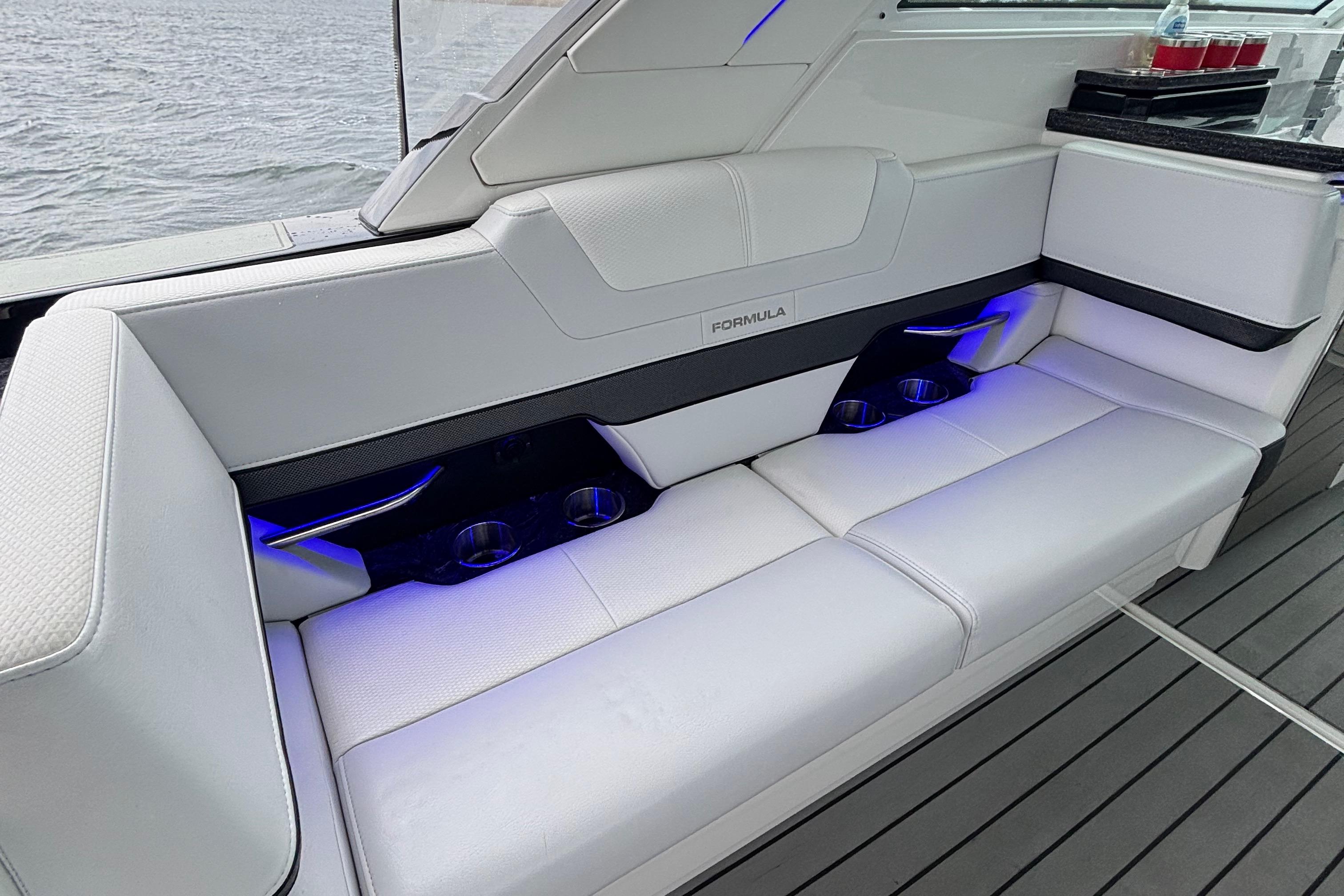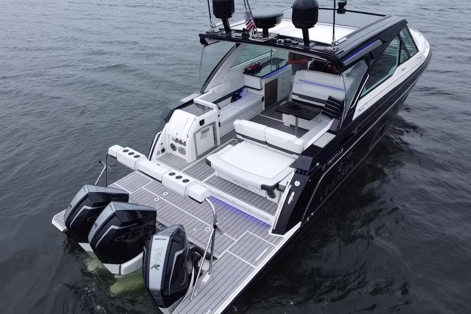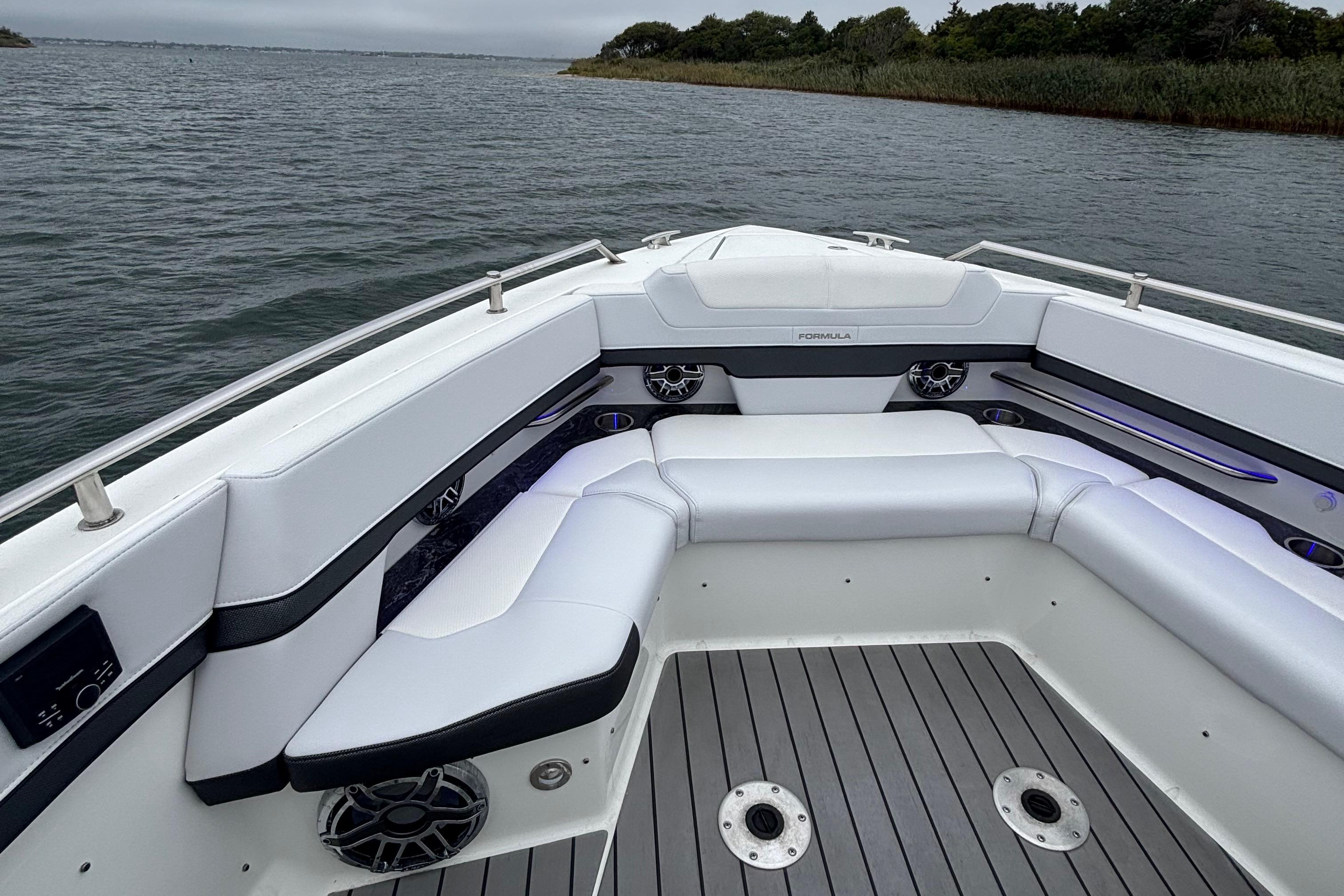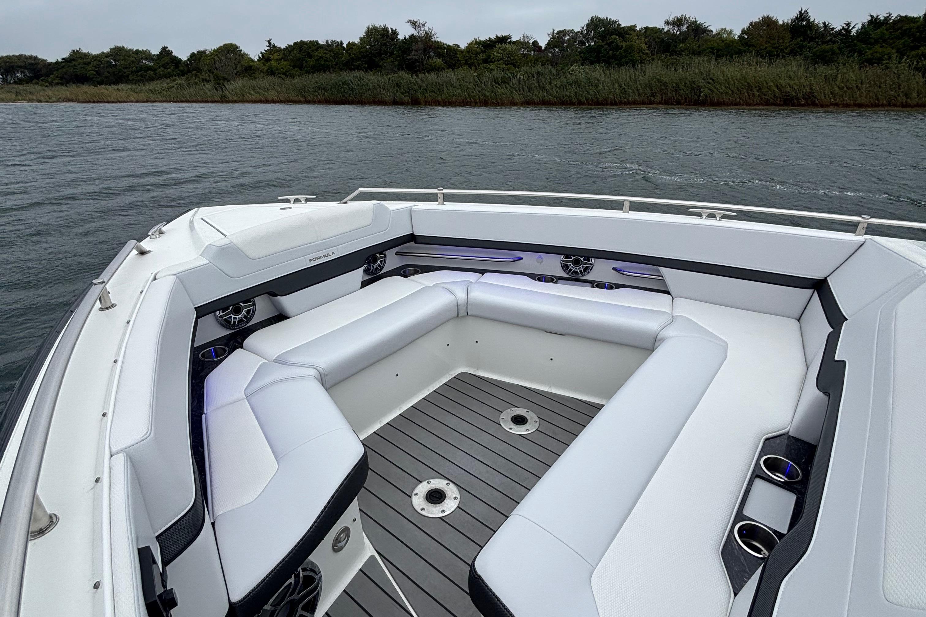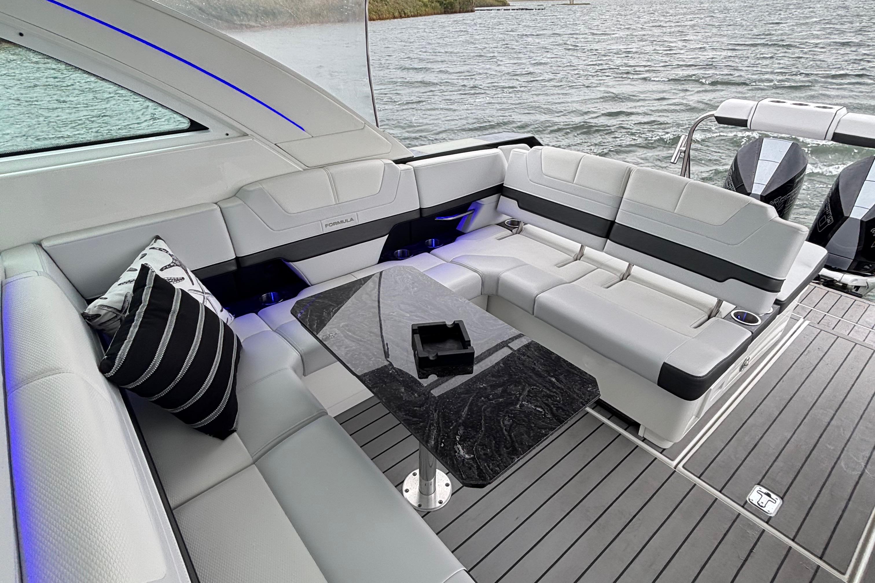 This 2022 Formula 380 SSC, powered by triple Mercury Racing 450R outboards with only 130 hours, delivers the best of both worlds: the performance and open layout of a bowrider with the overnight capability of a cruiser. The 380 SSC is one of Formula’s most versatile and desirable models, offering incredible day-boating space and comfort, while also fully equipped for extended getaways.