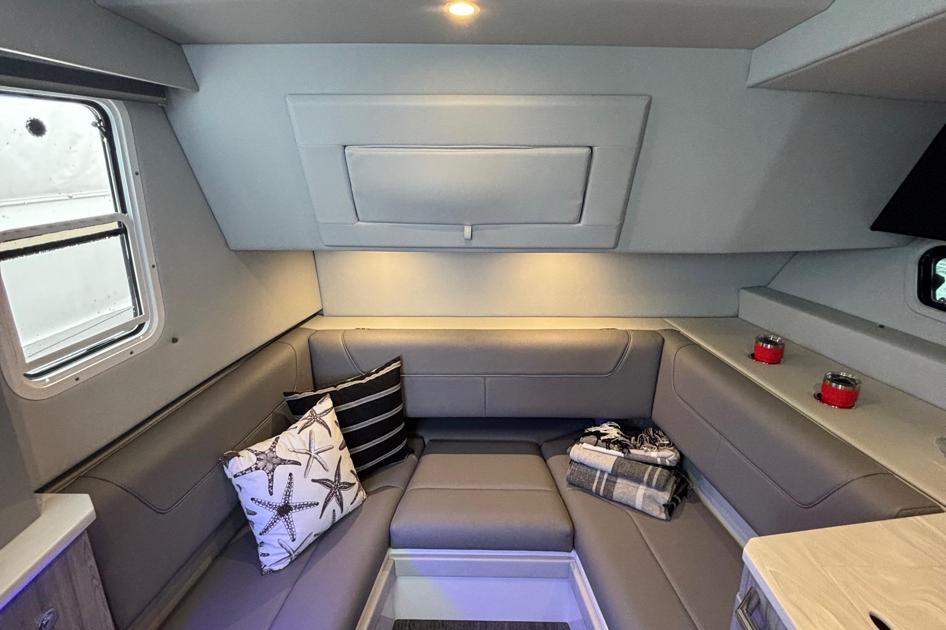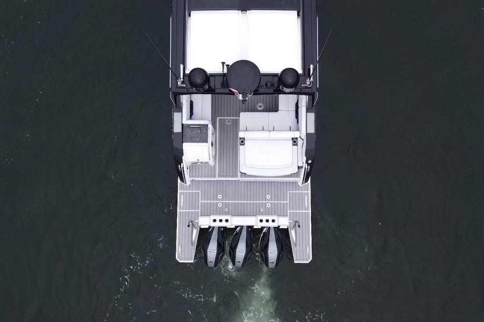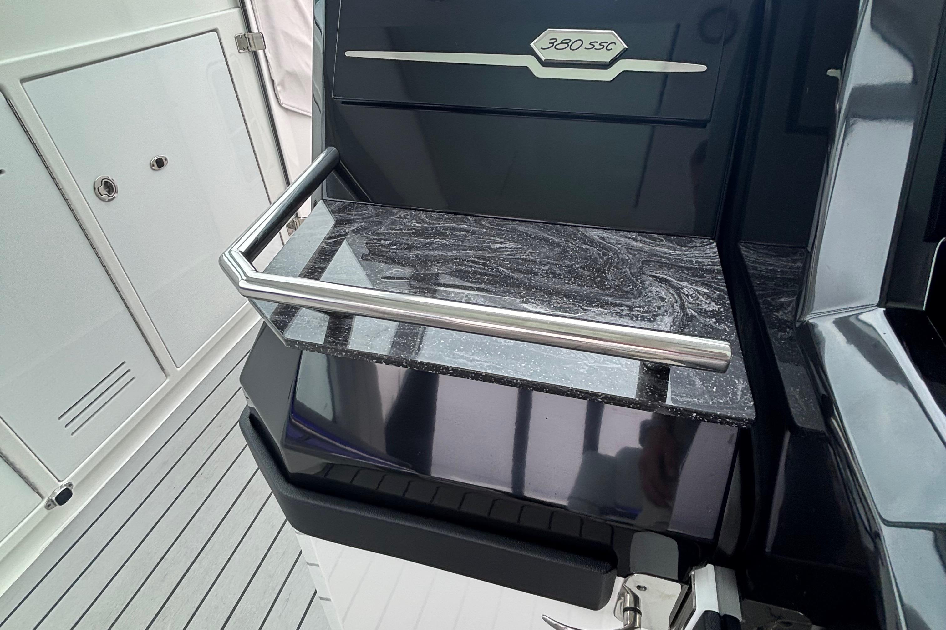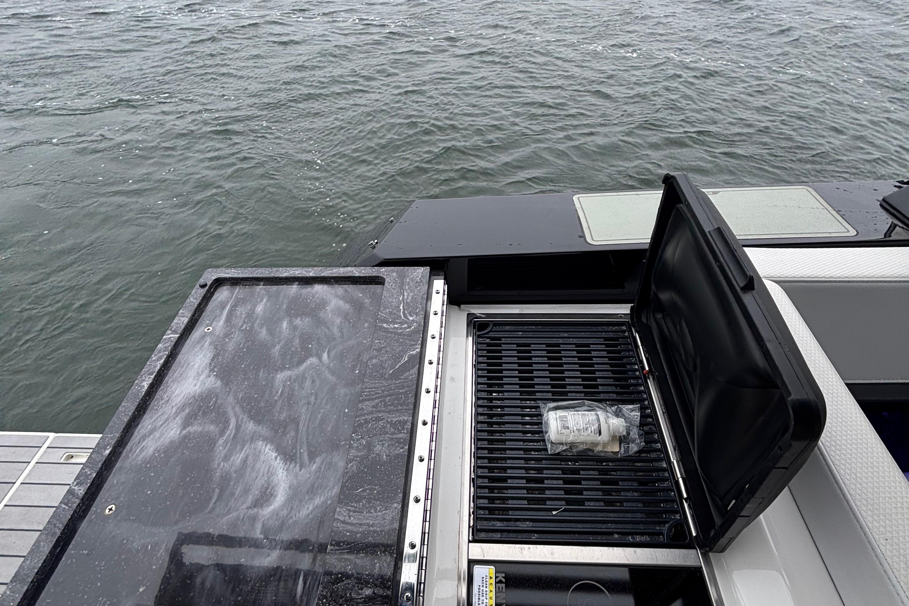 - Aft electric grill, TV, upgraded stereo, SureShade (black)