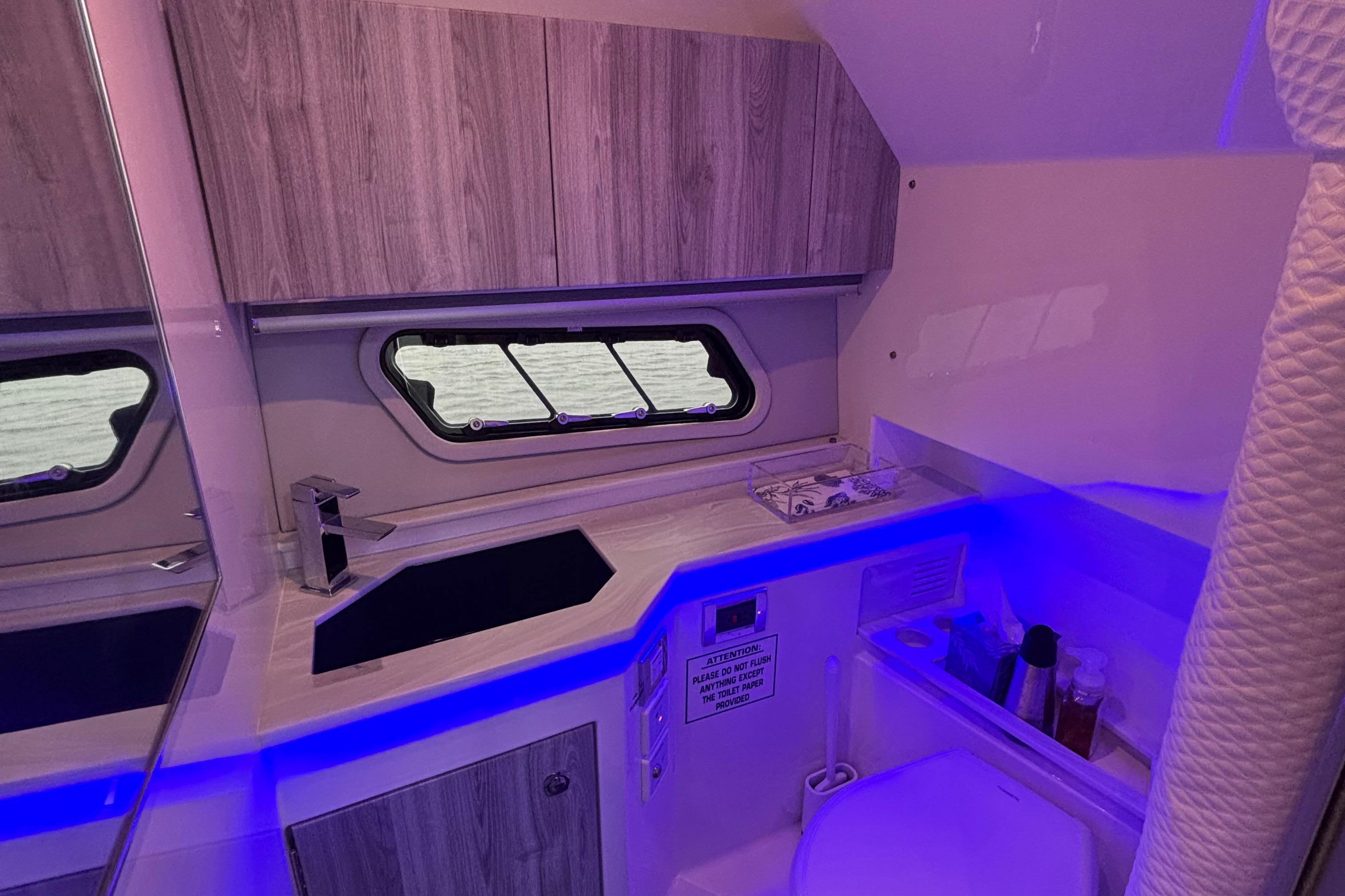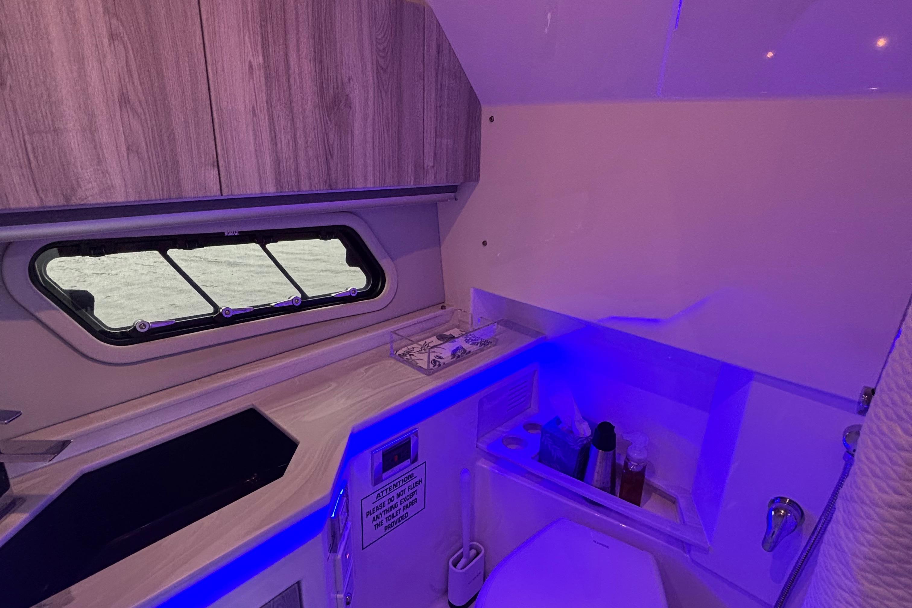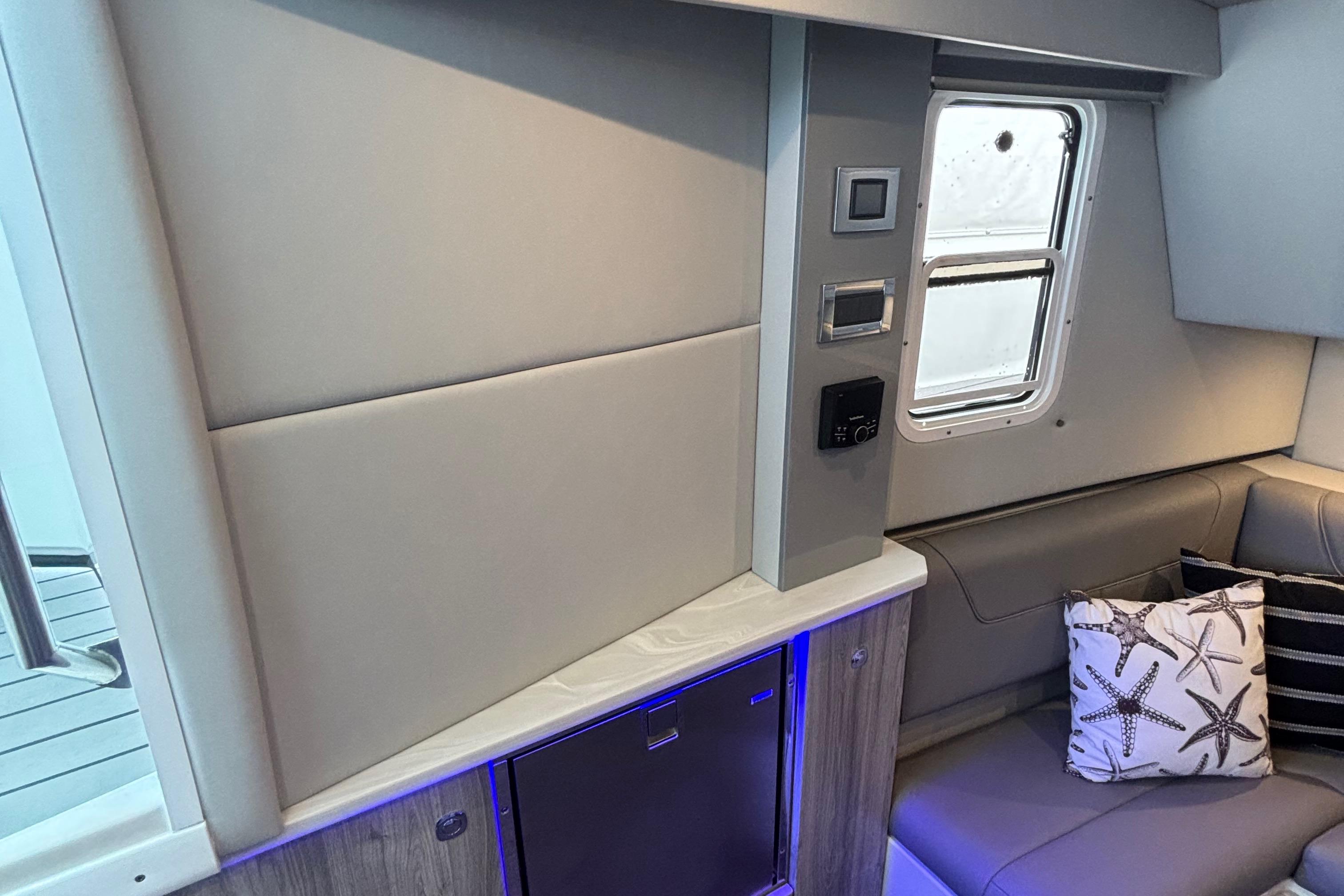 - Aft electric grill, TV, upgraded stereo, SureShade (black)