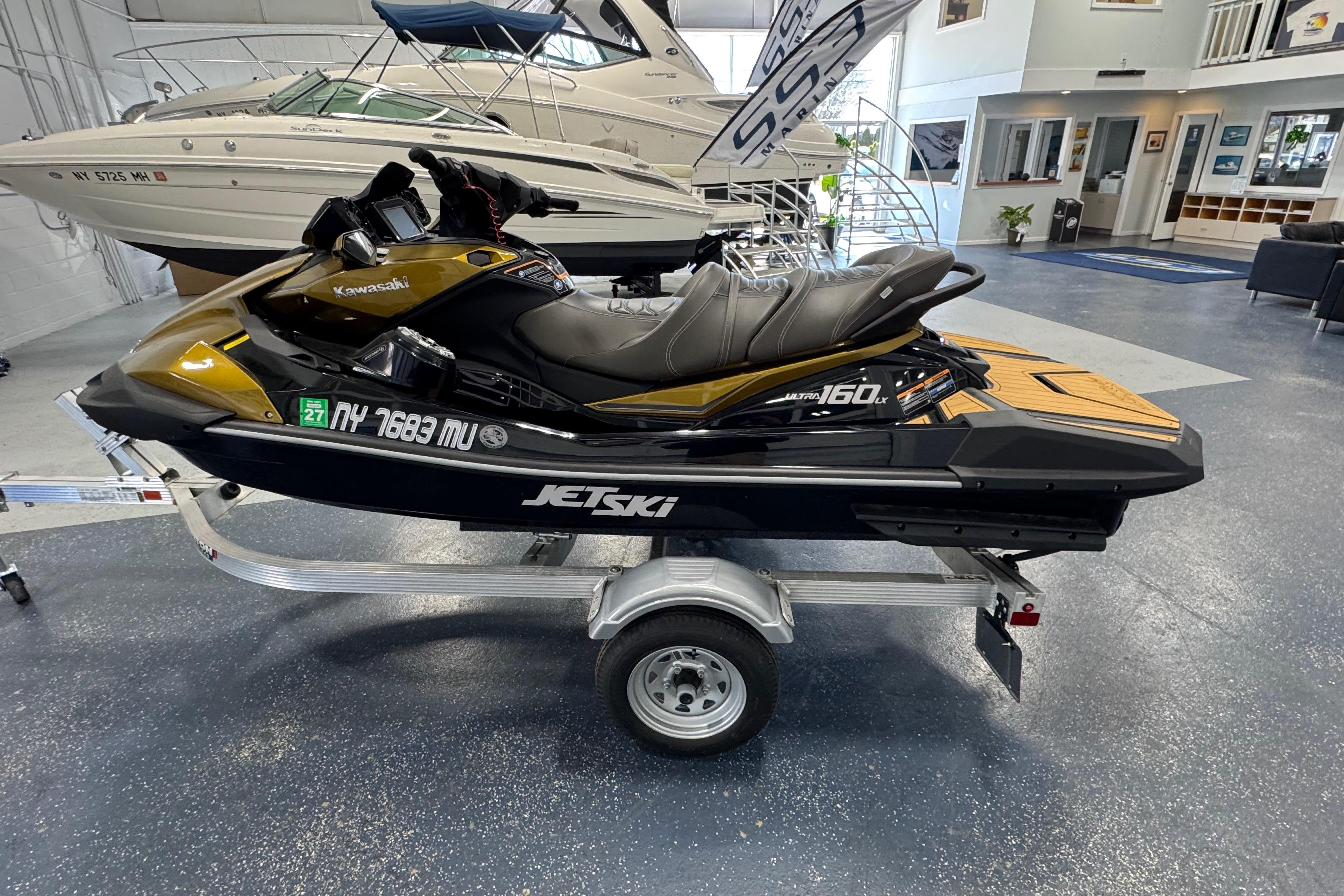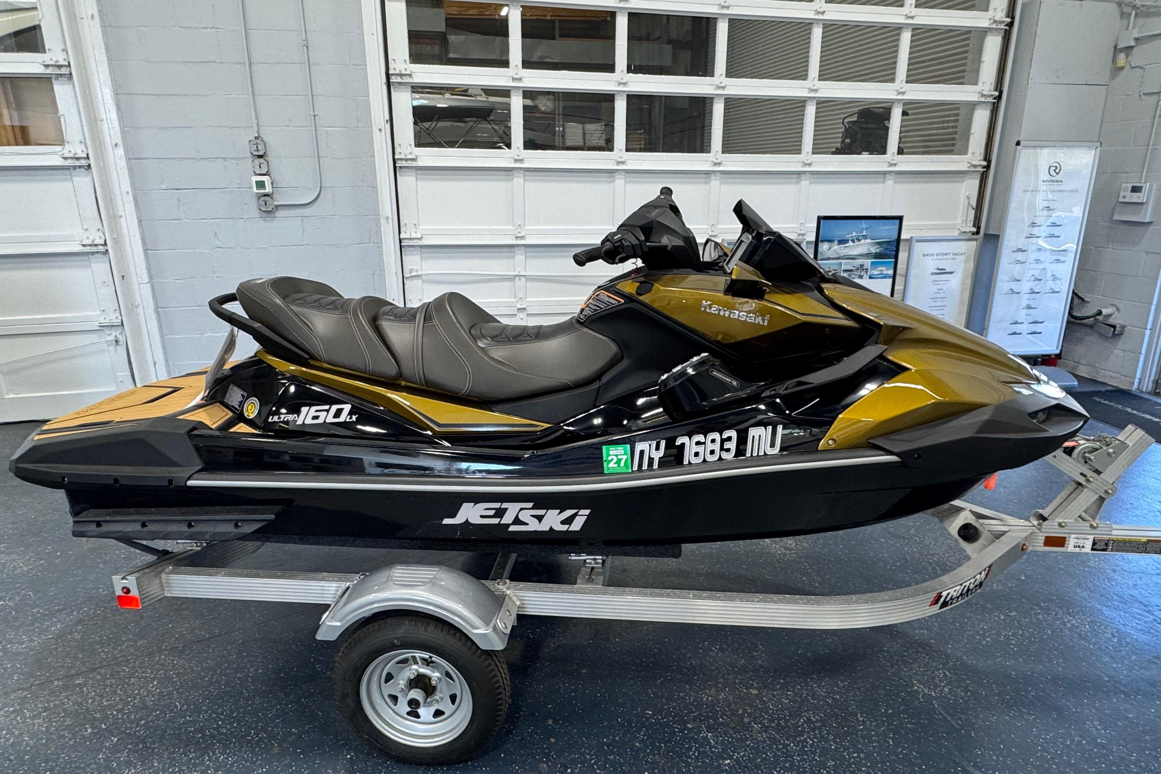 The Kawasaki Jet Ski Ultra 160LX is a 3-passenger personal watercraft featuring a 1,498cc, 4-stroke, inline 4-cylinder engine, with a 22.5 degree deep-V hull, offering a combination of performance and comfort, boasting a large storage capacity, and notable features like Kawasaki Smart Reverse with Deceleration (KSRD) and a 7-inch chartplotter on the Angler version; key specs include an overall length of 140.9 inches, a curb weight of 987.8 pounds, and a seating capacity for three people. Key Specs: