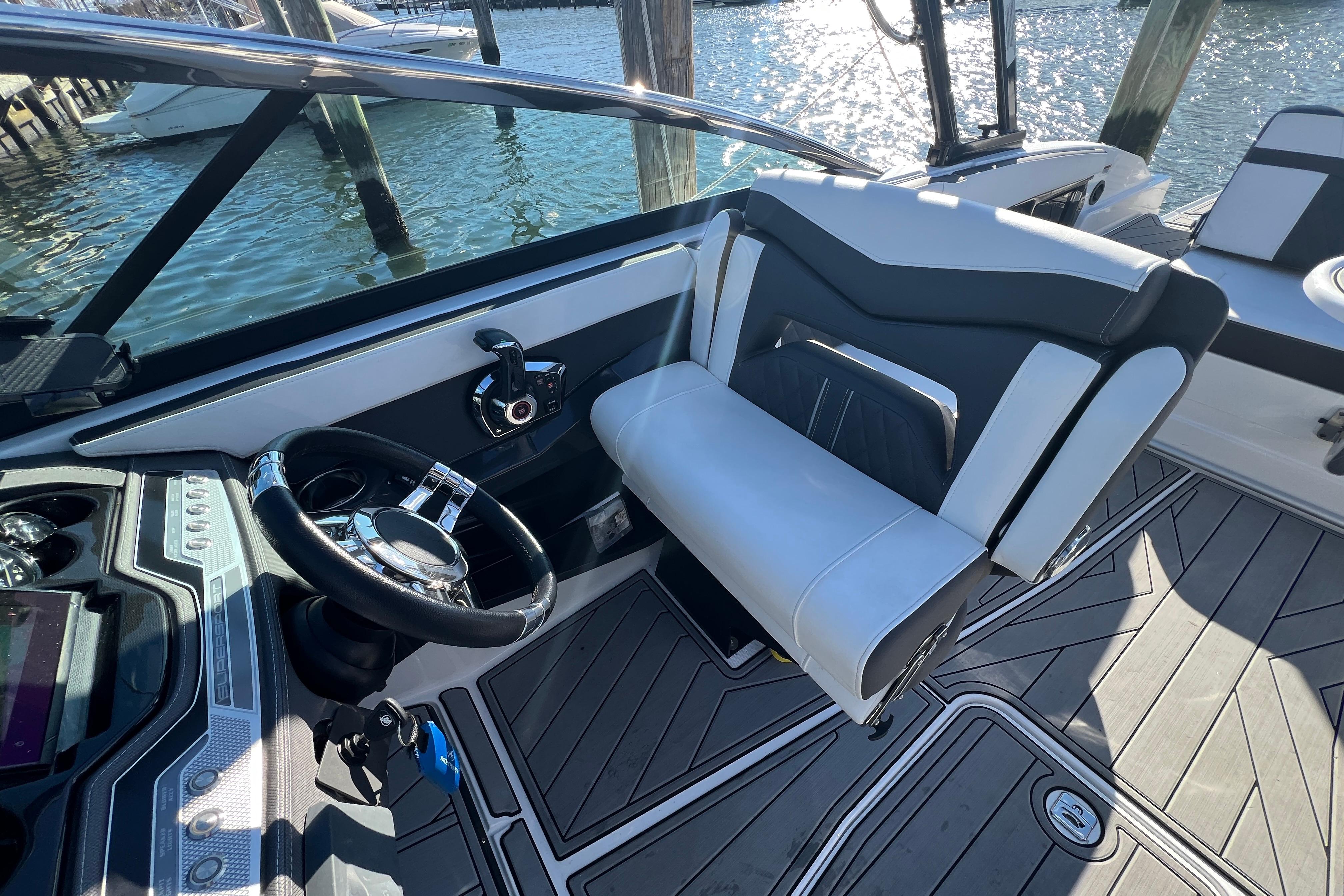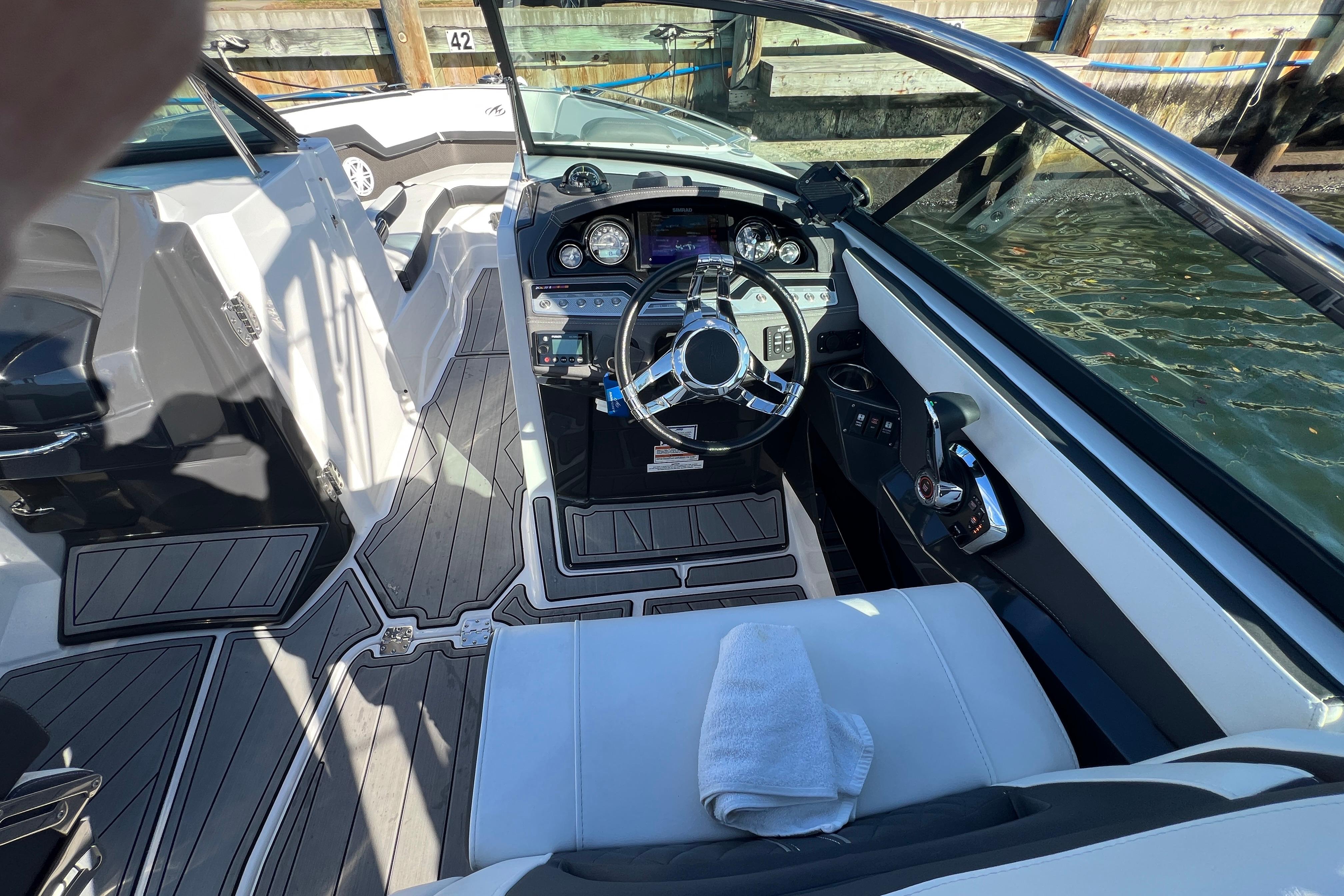 Introducing the 2023 Monterey 275SS Super Sport, a stunning bowrider that combines elegance with performance. Measuring an impressive 30.83 feet in overall length, this vessel features a sleek modified vee hull made from durable fiberglass, ensuring a smooth ride on the water. Powered by a robust 400 hp Mercury Verado 400 outboard engine, it delivers exhilarating cruising speeds of up to 32 mph and a maximum hull speed of 54 mph, making it perfect for thrilling adventures. With a seating capacity for 14, this boat is ideal for entertaining friends and family. It comes equipped with an electric windlass, enhancing convenience during anchoring. The Monterey 275SS is designed for those who appreciate both style and functionality, offering a range of 209 miles for extended outings. Experience the joy of boating with this remarkable vessel that promises unforgettable moments on the water.